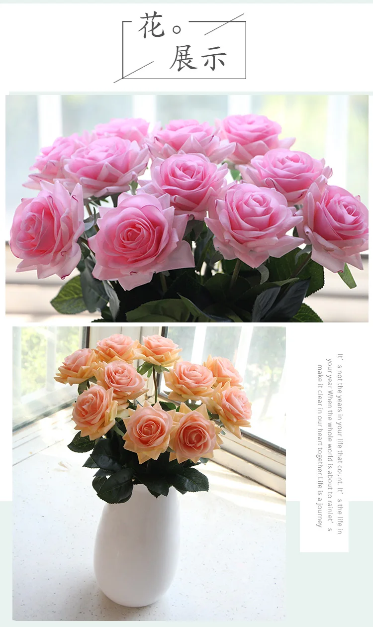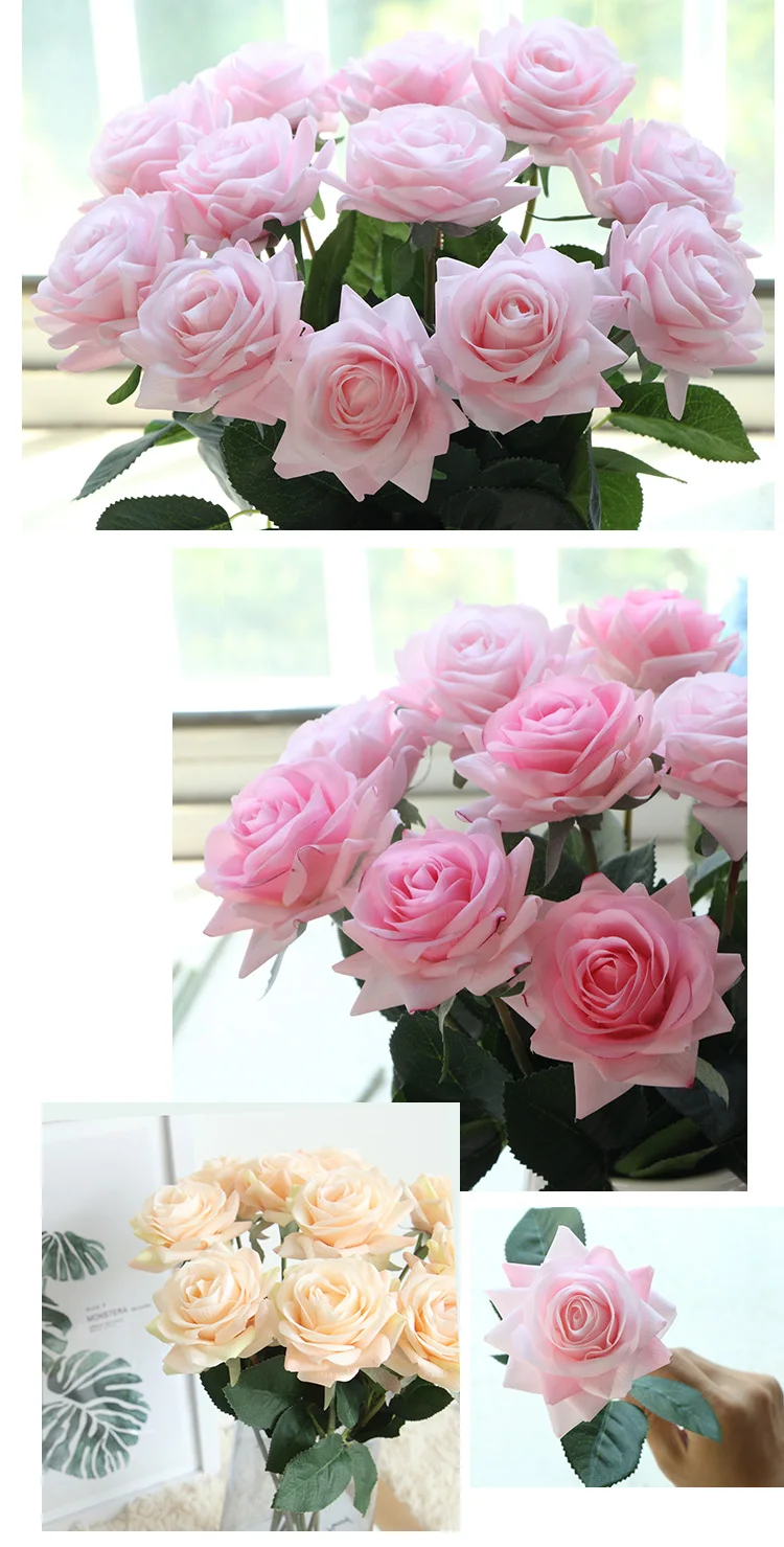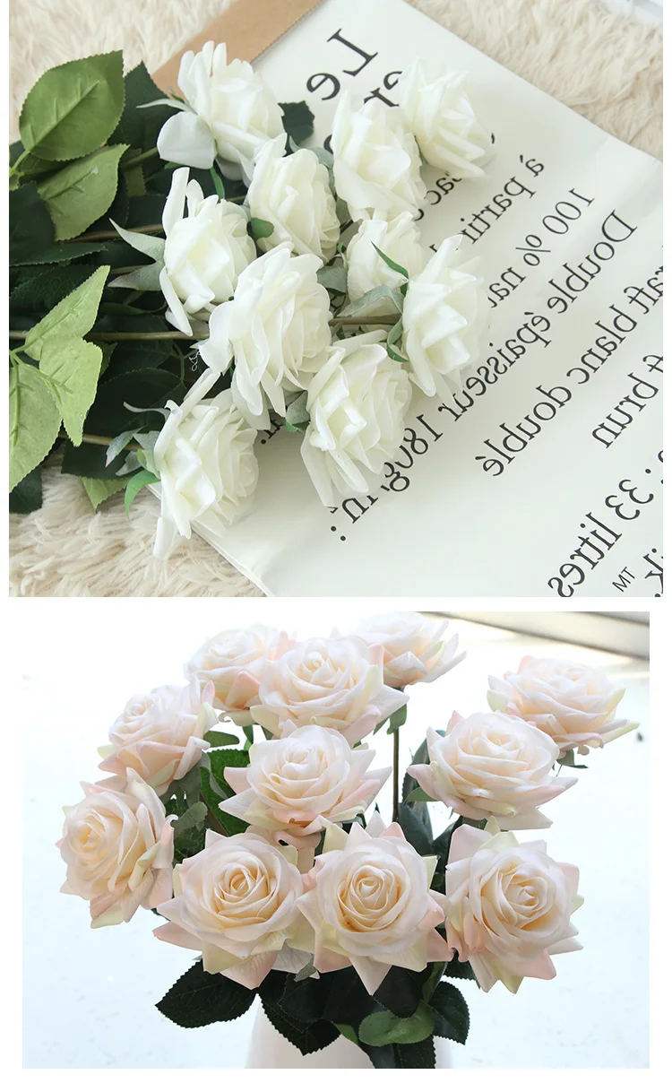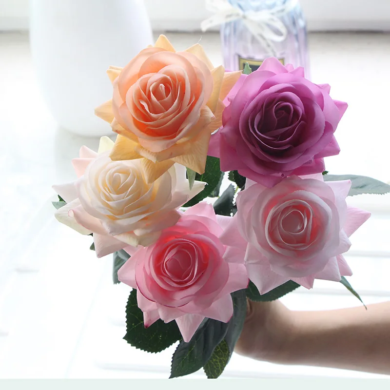 15pcs 인공 장미 꽃다발 장식 홈 웨딩 파티 발렌타인 데이 생일 선물 가짜 꽃