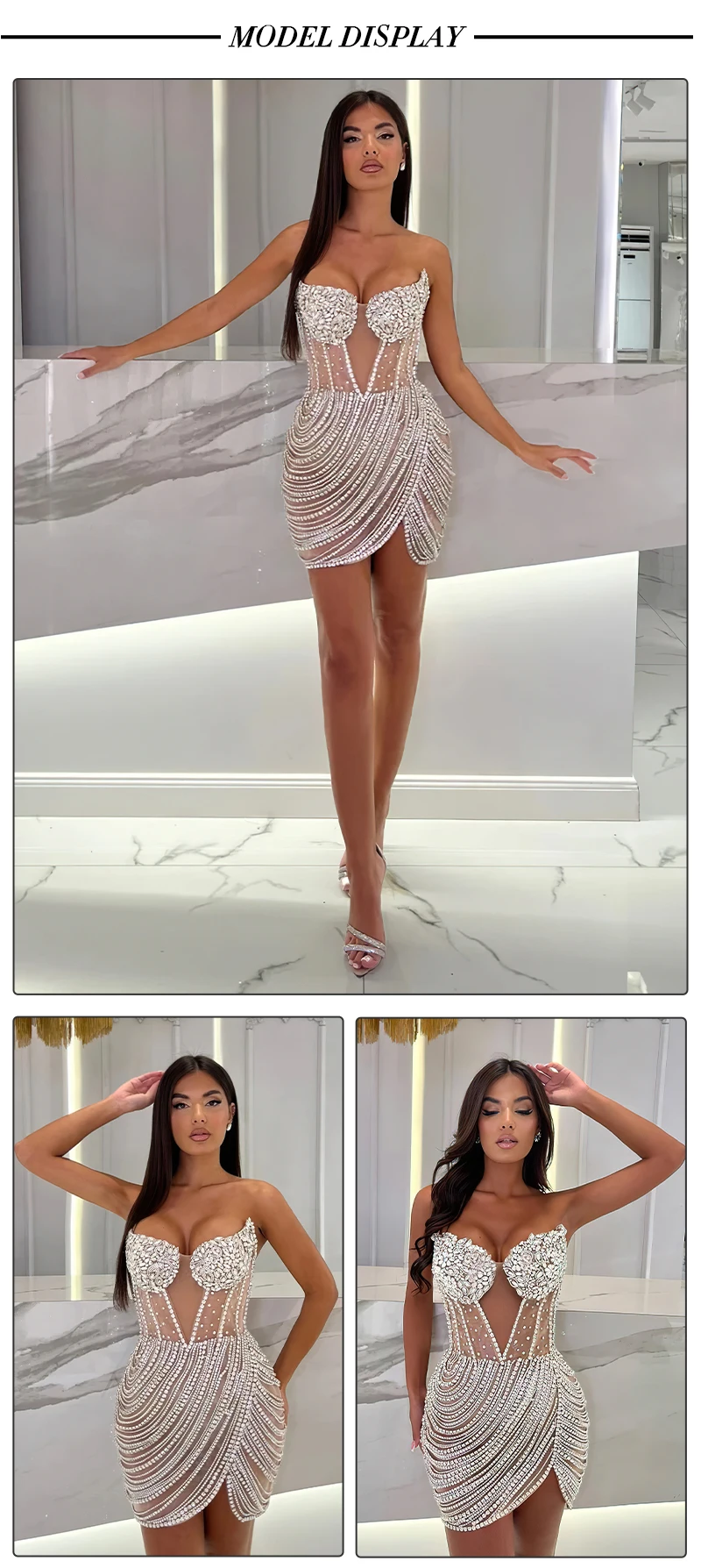 - Above Knee Length: This chic design elegantly showcases your legs, offering a modern aesthetic that is perfect for a variety of occasions.