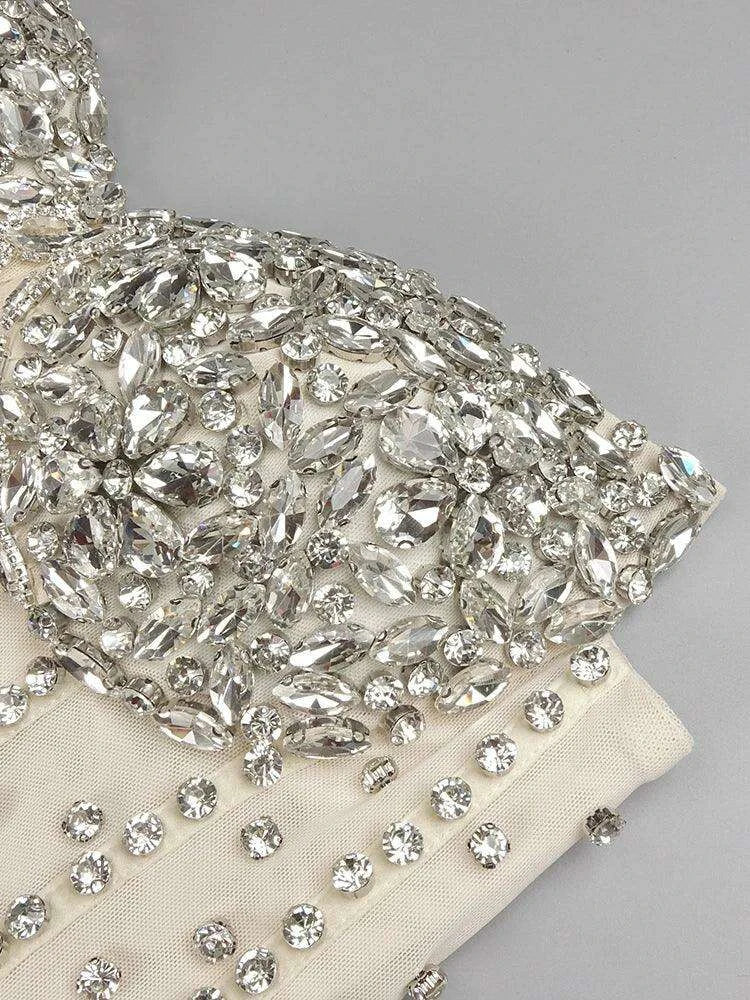 Glistening Crystal Sheath Gown - Elegant Above Knee Dress for Brides and Celebrations