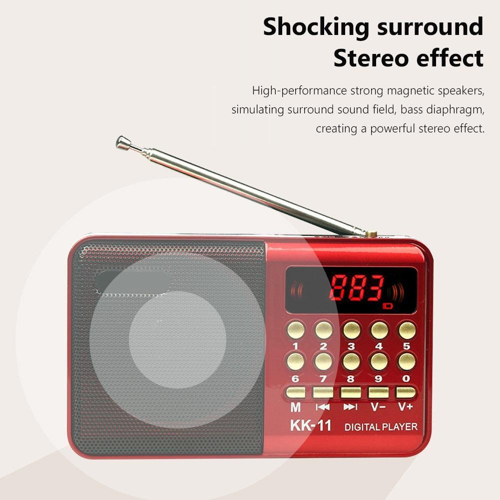 K11 미니 휴대용 라디오 레코더 핸드 헬드 USB 충전식 디지털 FM MP3 플레이어 스피커 장치 TF 카드 지원