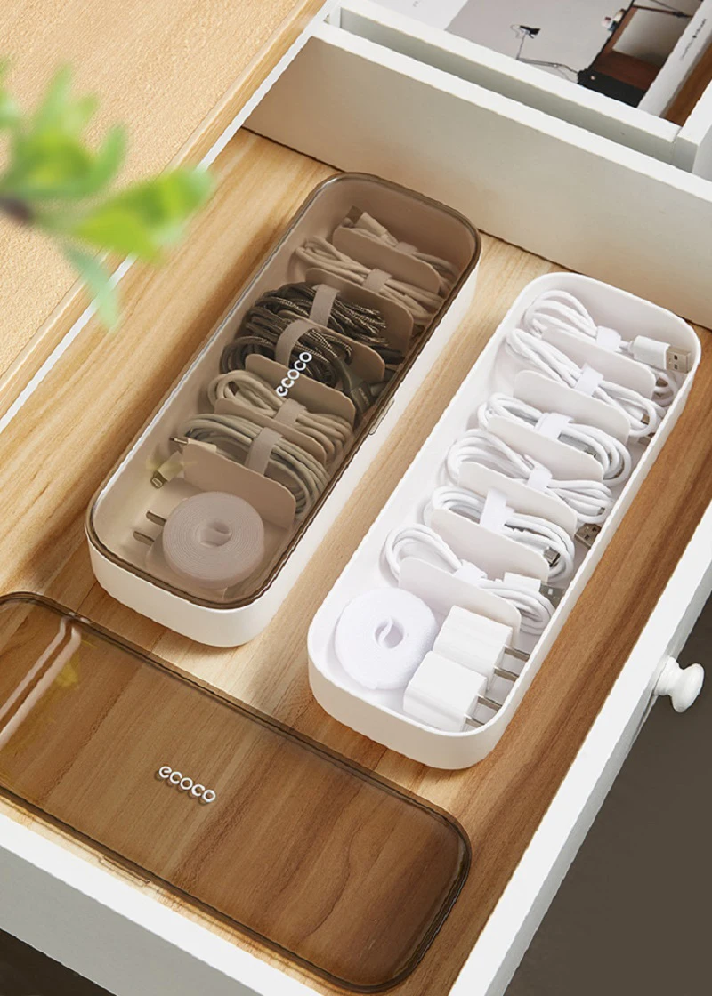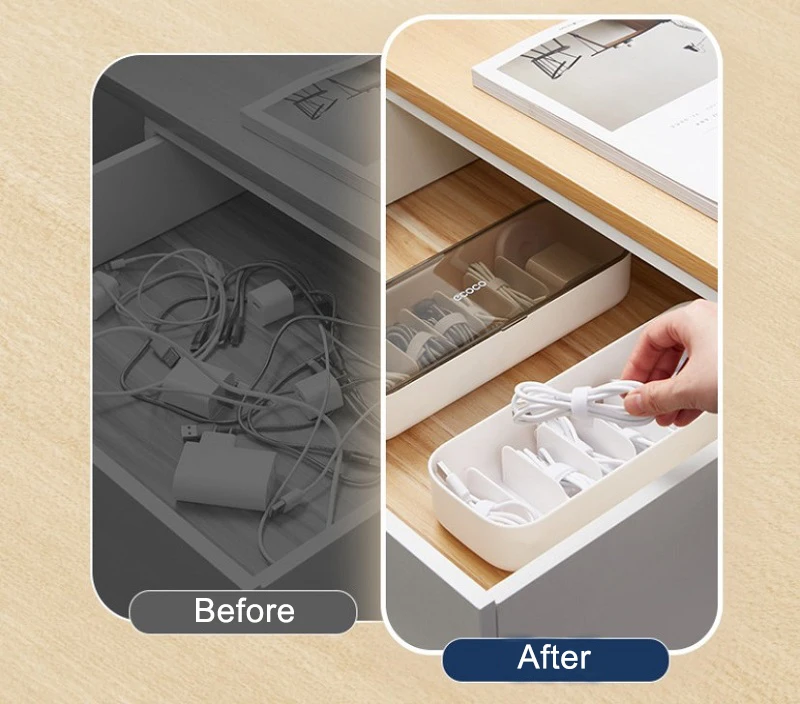 케이블 보관함: 거실, 침실 및 서랍용 투명 데이터 라인 충전기 플러그 보관함 정리함