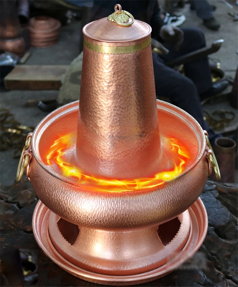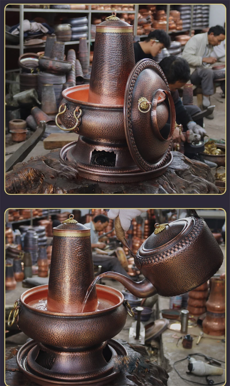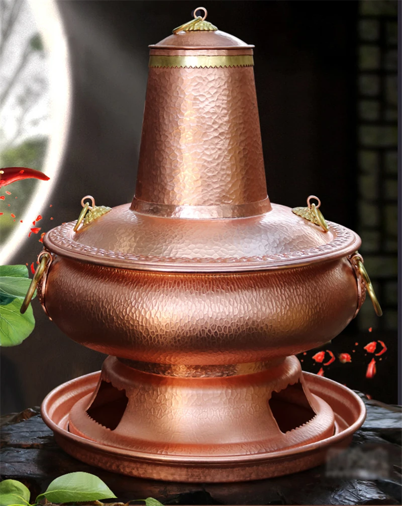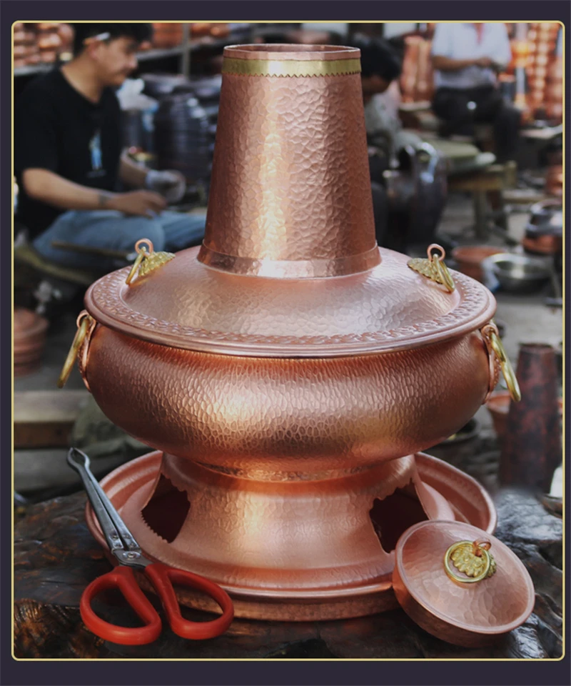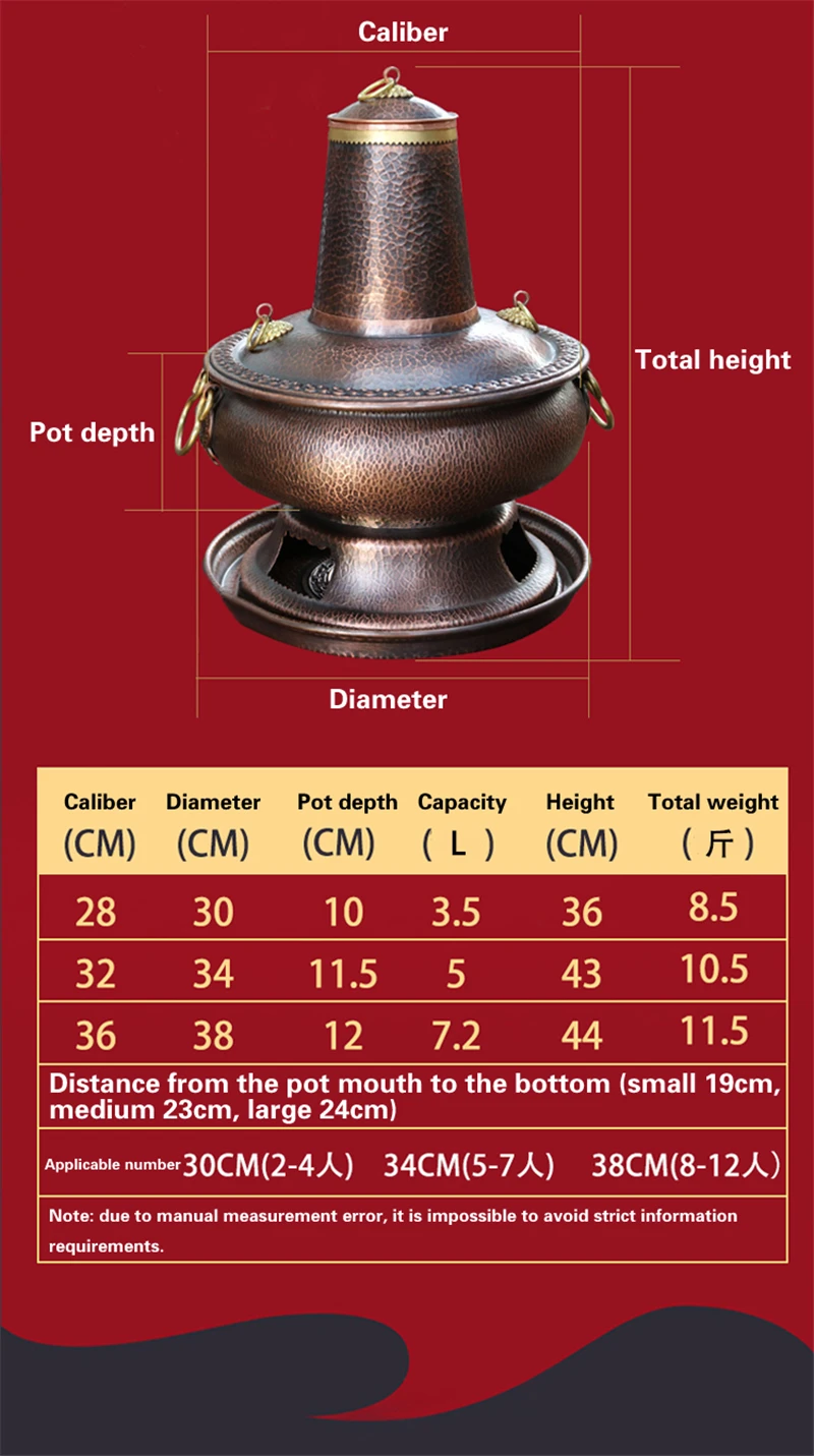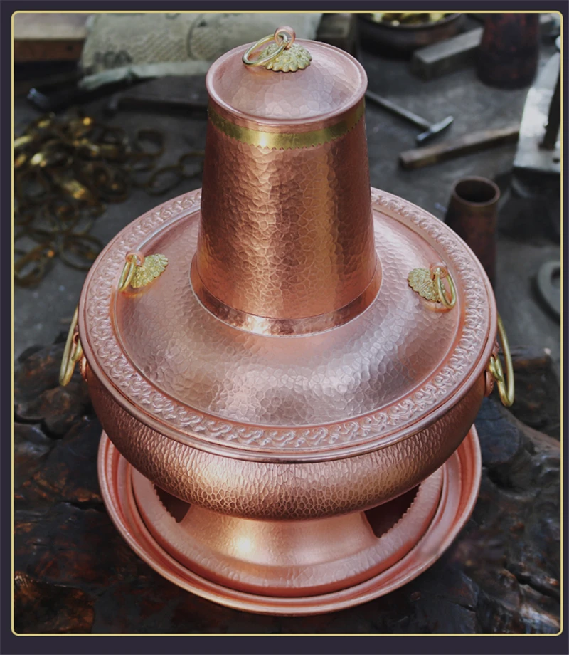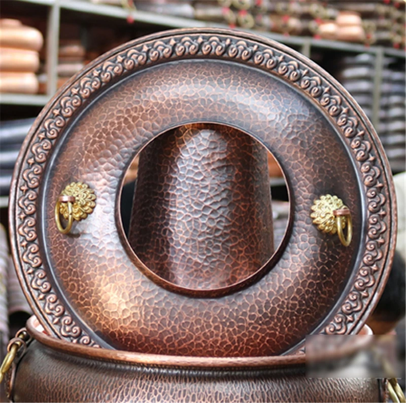 구리 연소 보일러 숯 구리 냄비 순수 수동 두꺼운 상업용 냄비 전통적인 복고풍 구리 냄비