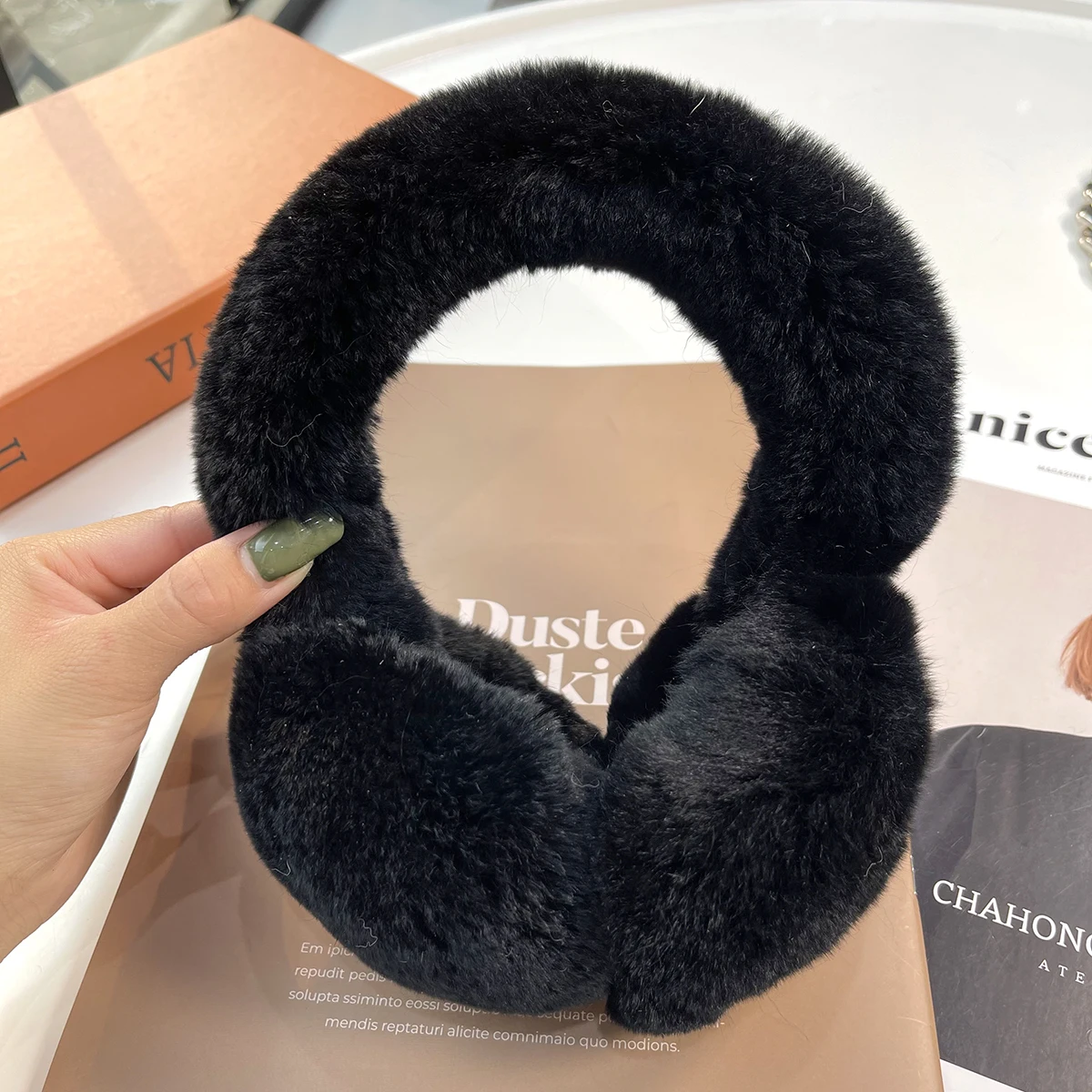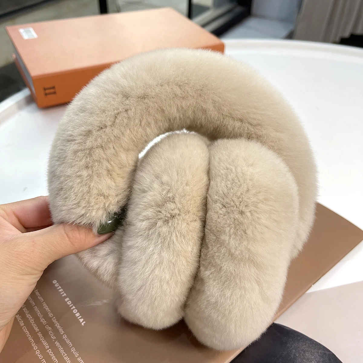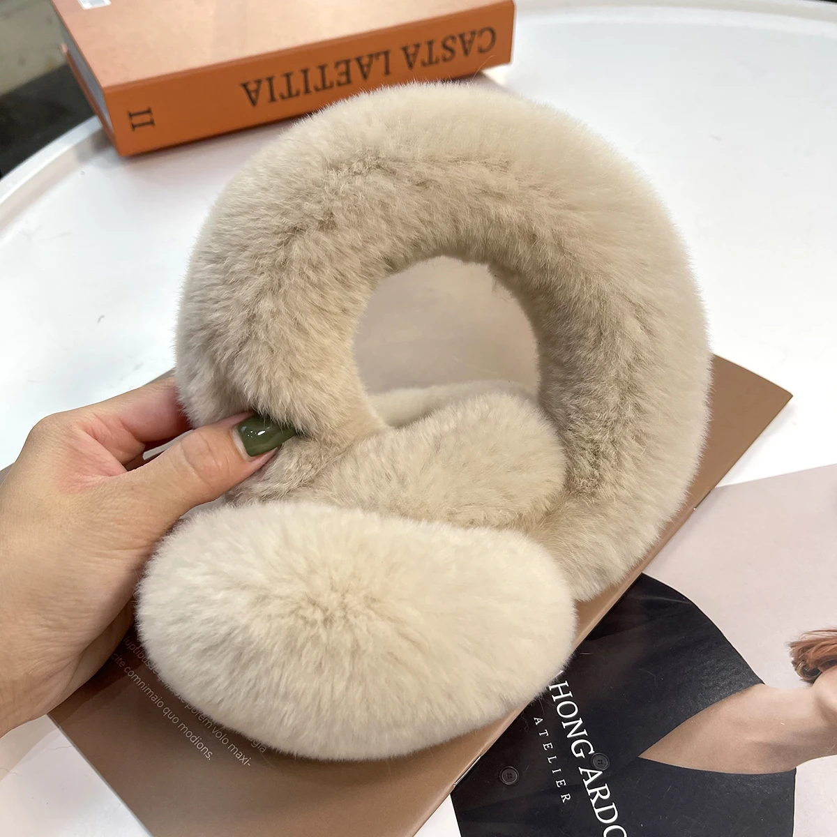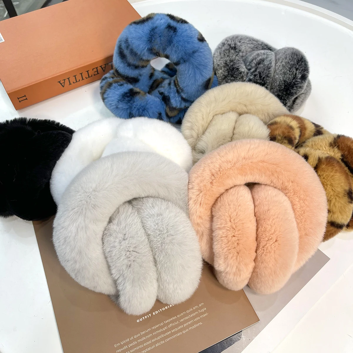 겨울 따뜻한 렉스 토끼 모피 귀마개 귀 귀고리 플러시 귀마개 여자 숙녀 여자 hairbands 라인 석 귀 muffs 귀 따뜻하게