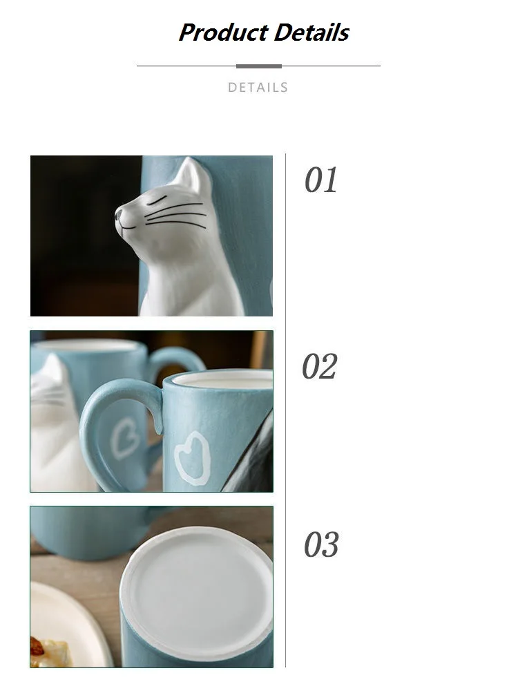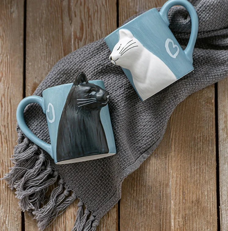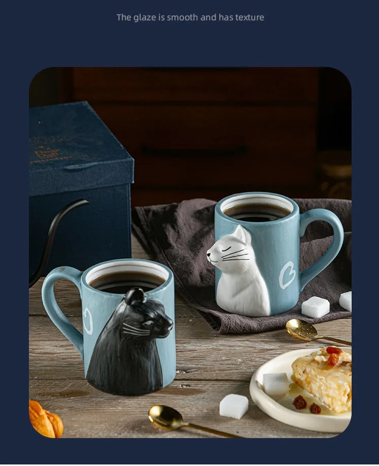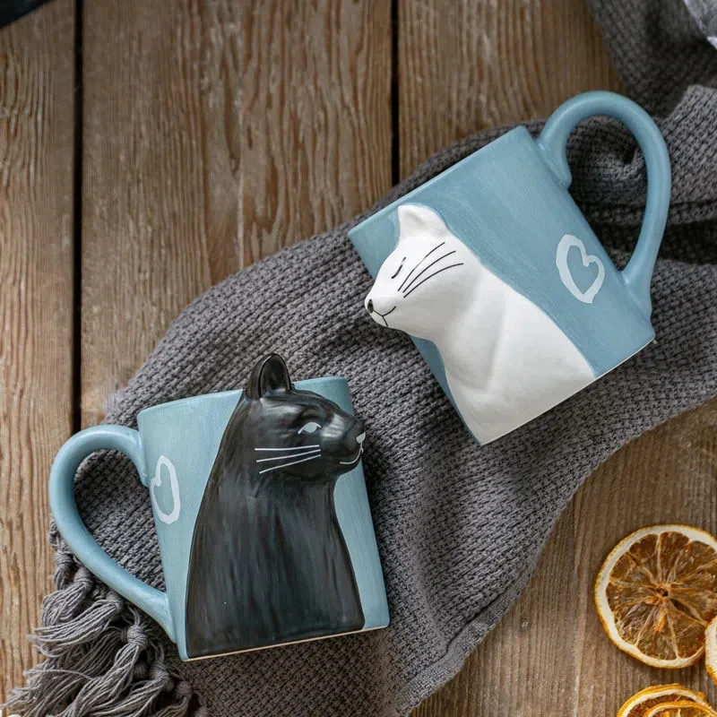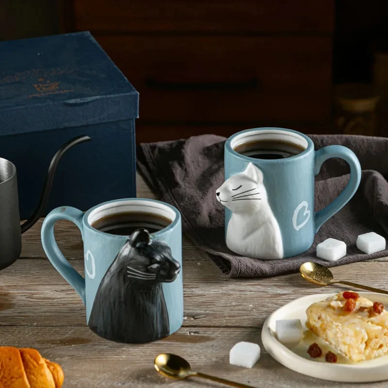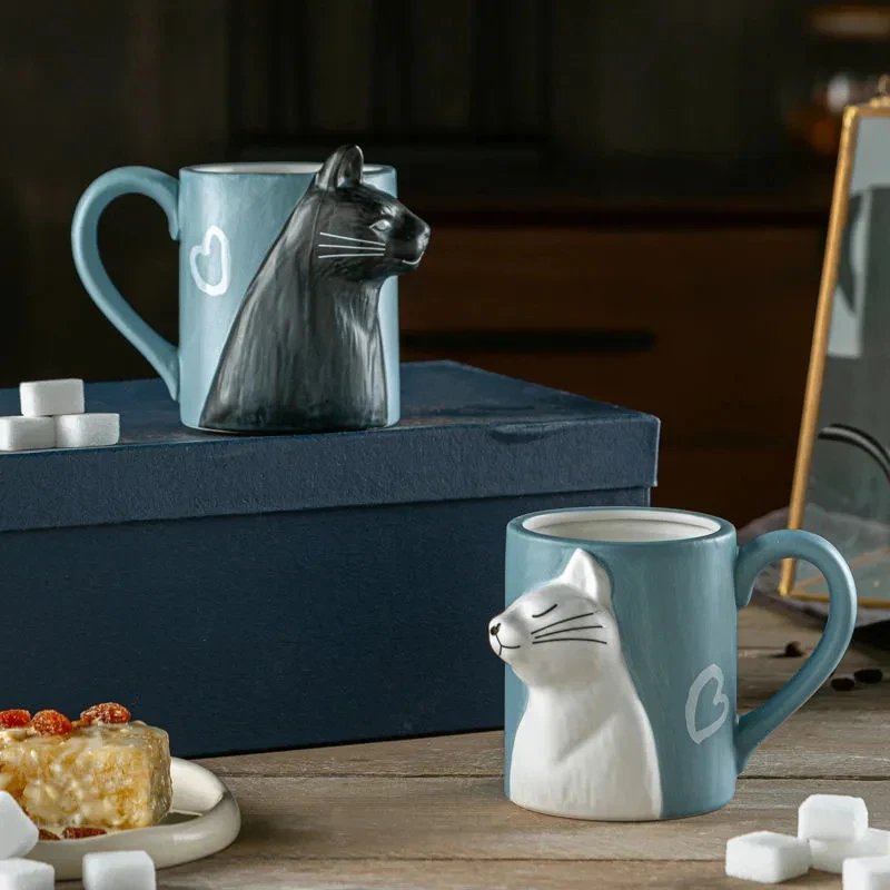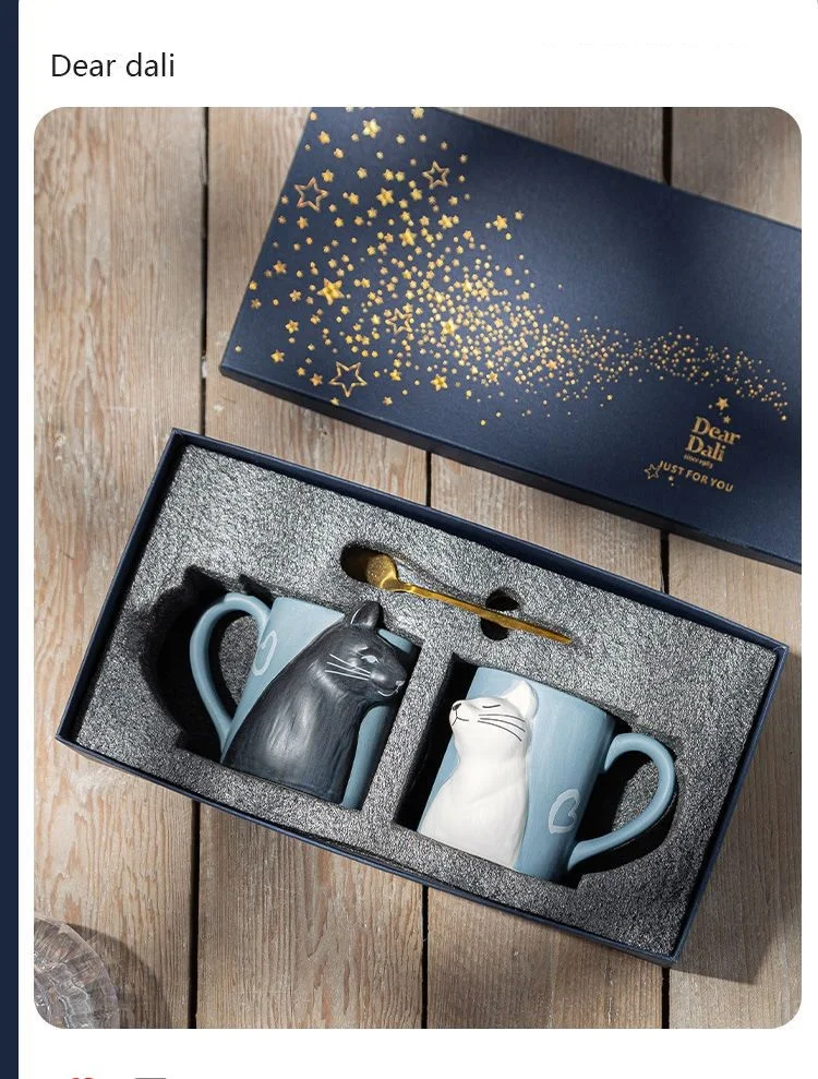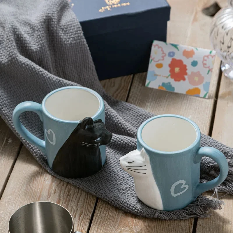 2pcs 귀여운 키스 고양이 컵 커플 세라믹 머그잔 결혼 커플 기념일 아침 머그잔 우유 커피 차 아침 식사 발렌타인 데이