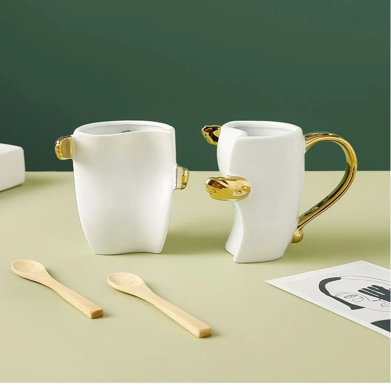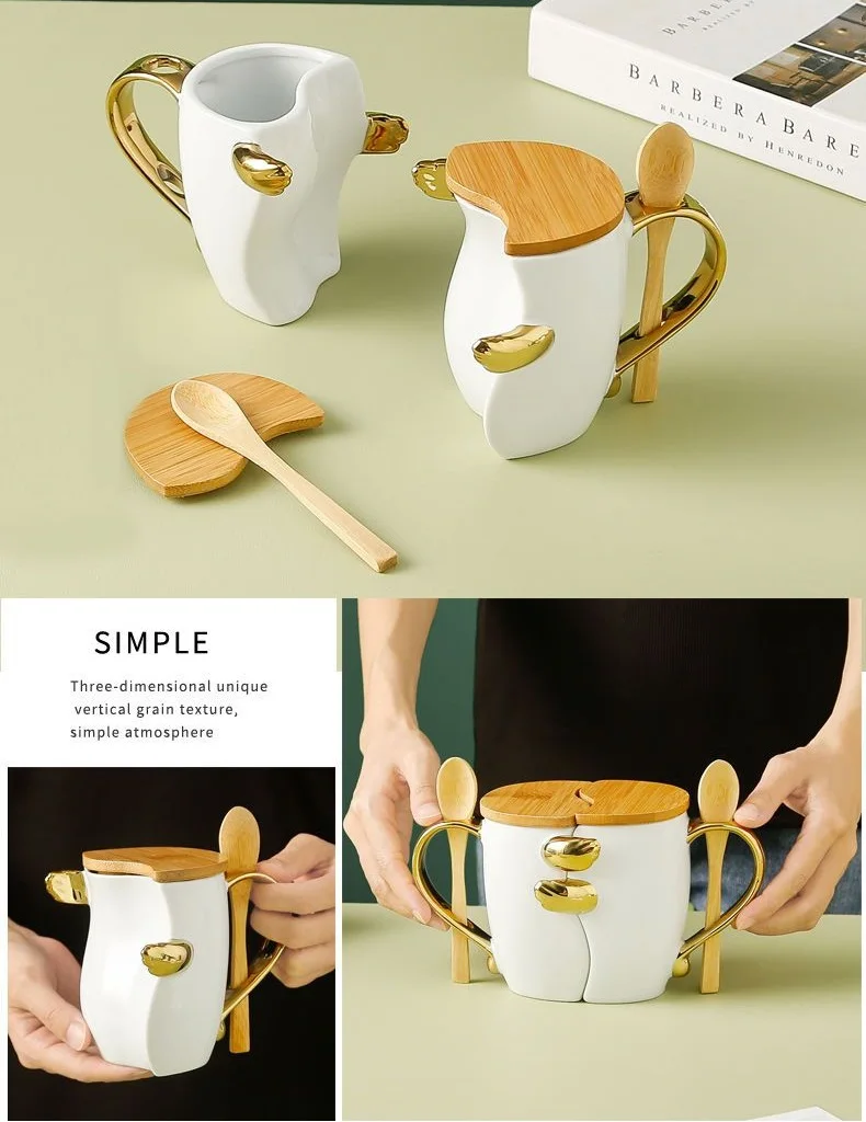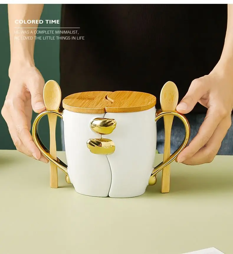 2개/세트 커플 컵 세라믹 커피 머그잔 스푼과 커버 포함