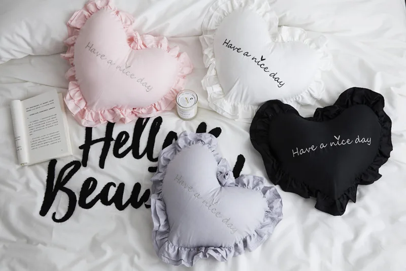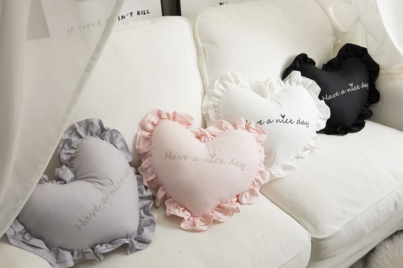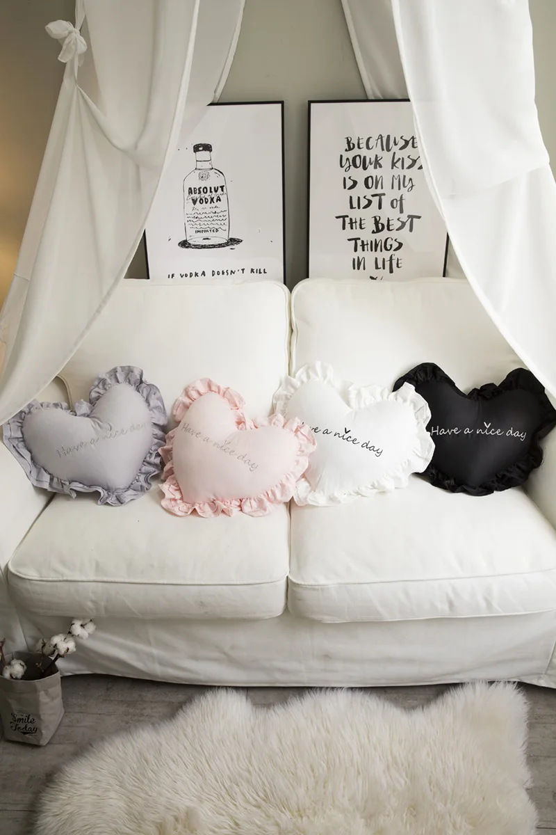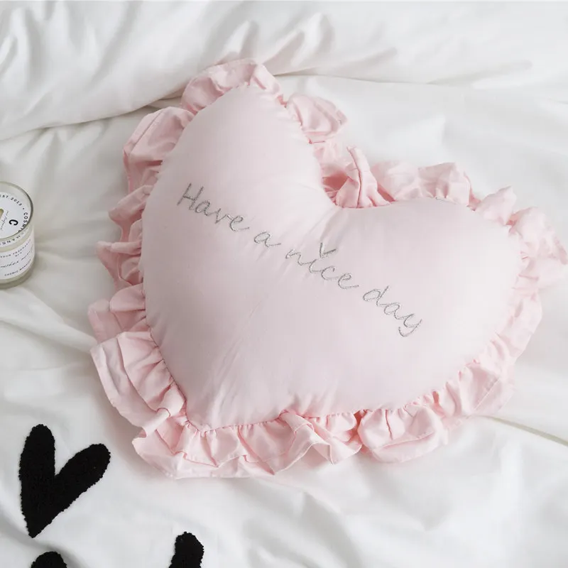 러플 하트 모양 쿠션 러브 자수 - 아늑한 보육원 면 소파 및 자동차 베개