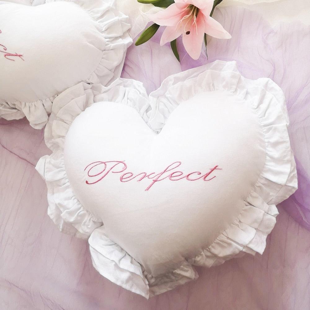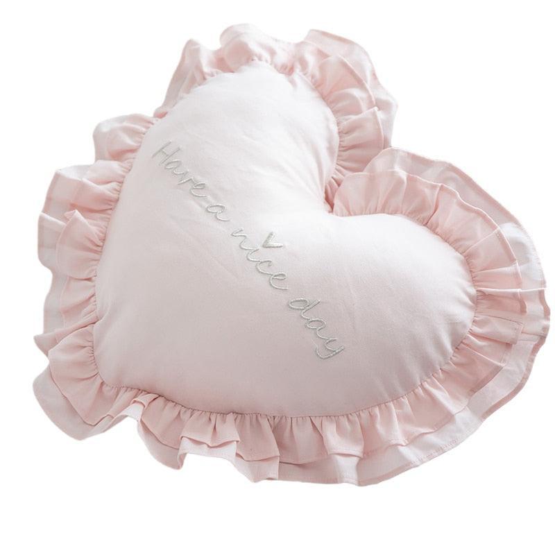 러플 하트 모양 쿠션 러브 자수 - 아늑한 면 소파 베개