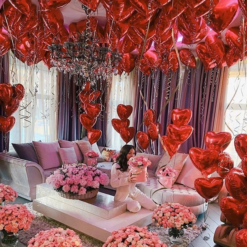 빨간 사랑 편지 호일 풍선 로맨틱 웨딩 발렌타인 데이 하트 풍선 기념일 생일 파티 장식 발렌타인 선물