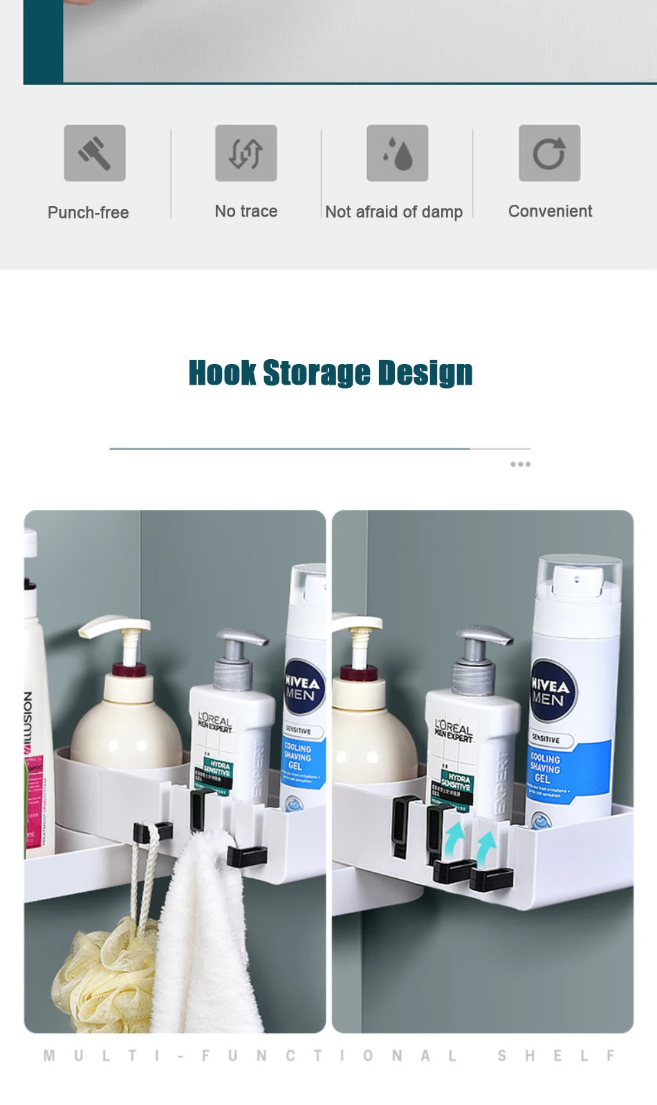 후크 회전식 주방 수납 선반이 있는 벽걸이형 욕실 정리 선반은 공간을 정리하고 깔끔하게 유지하려는 모든 사람에게 완벽한 솔루션입니다. 다재다능한 디자인과 내구성이 뛰어난 APS 소재를 사용한 이 스토리지 랙은 모든 가정에 꼭 필요한 아이템입니다. 또한 컴팩트한 크기와 후크 디자인으로 너무 많은 공간을 차지하지 않고도 보관 용량을 쉽게 늘릴 수 있습니다.