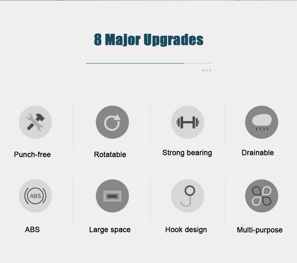 비천공 코너 디자인의 이 회전식 스토리지 랙은 벽을 손상시키지 않고 무거운 하중을 견딜 수 있습니다. 또한 48개의 배수구가 있는 바닥배수구 설계로 세균 번식을 방지하고 집안 환경을 깨끗하고 위생적으로 유지할 수 있습니다.