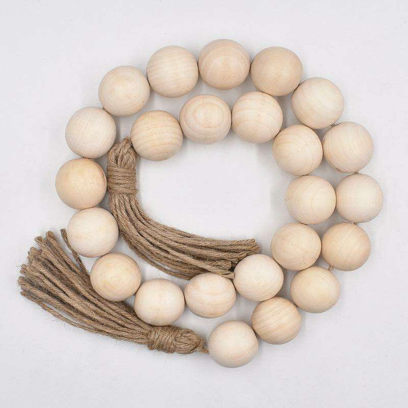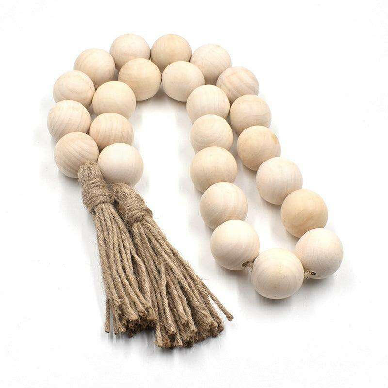 Rustic Country Wooden Bead Tassel Garland - Handcrafted Home Decor Accent