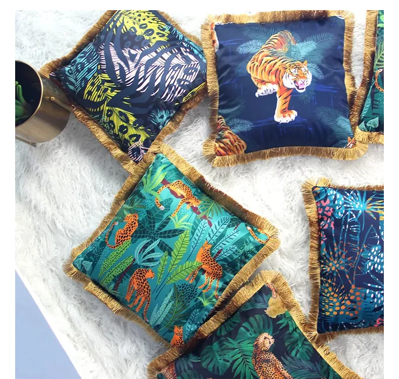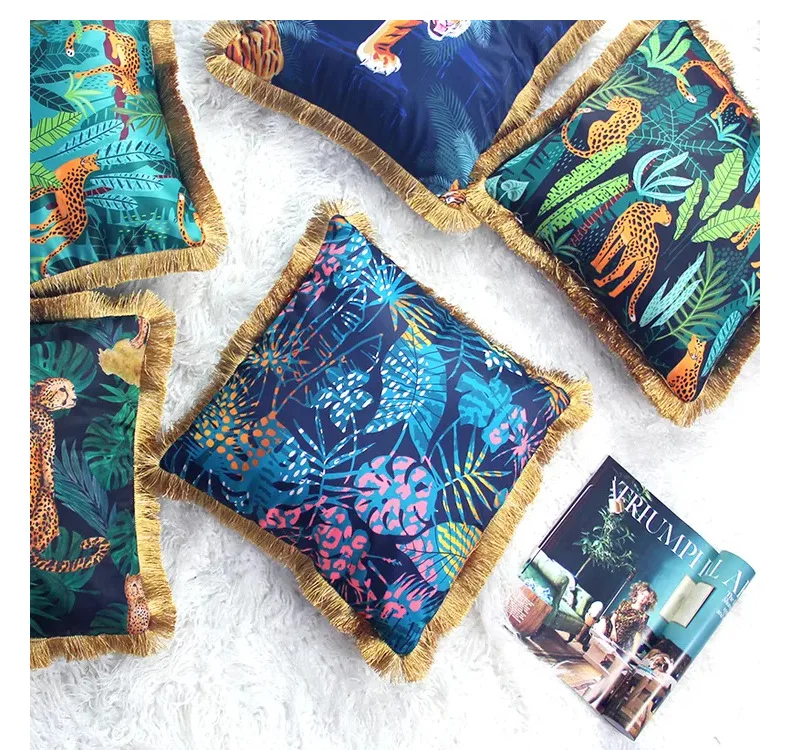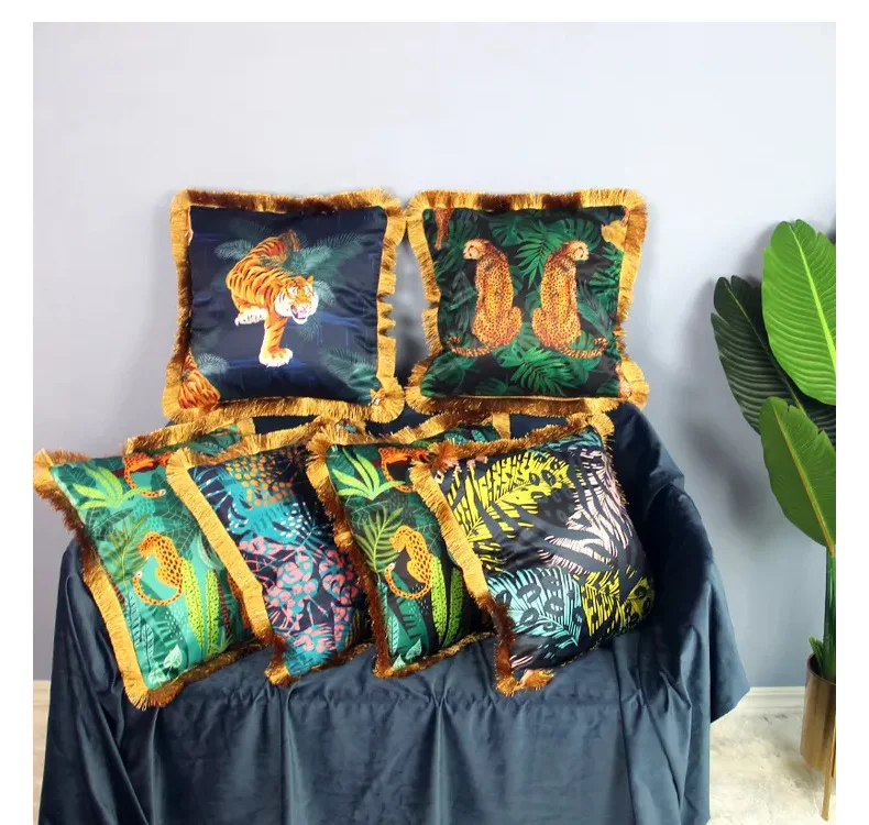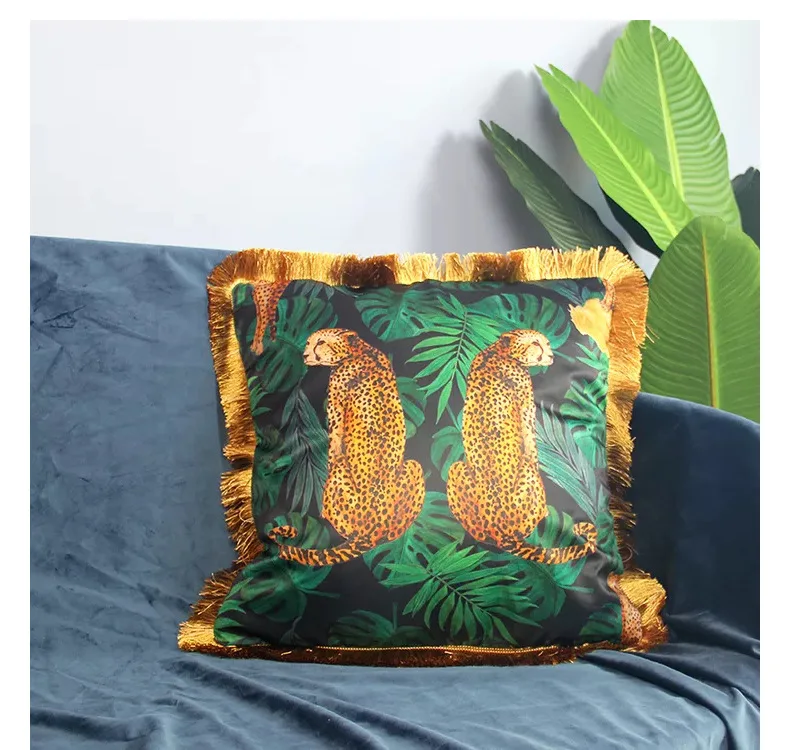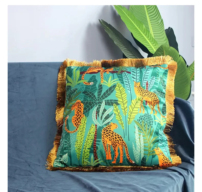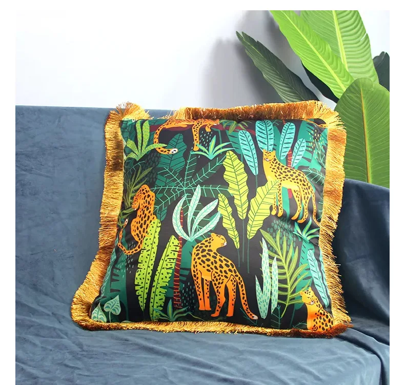 라이트 럭셔리 보타니카 골든 술 쿠션 커버 열대 우림 동물 허리 베개 케이스 레오파드 기거 아메리칸 베개 커버