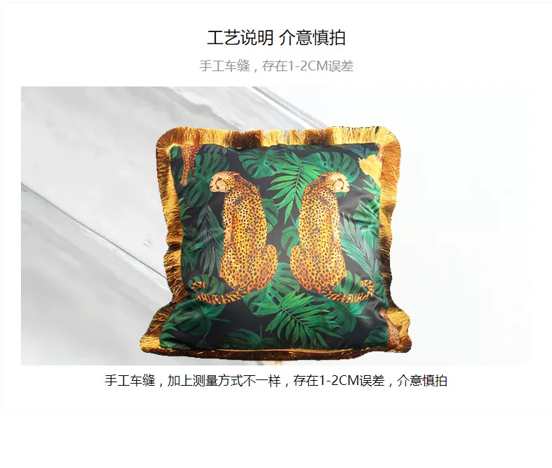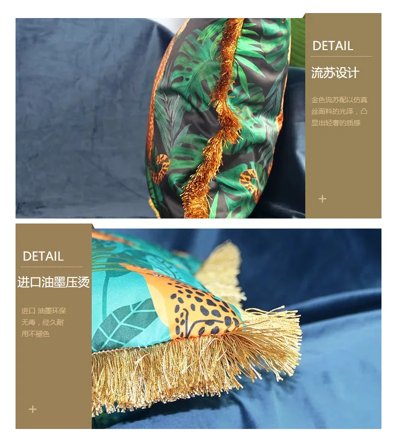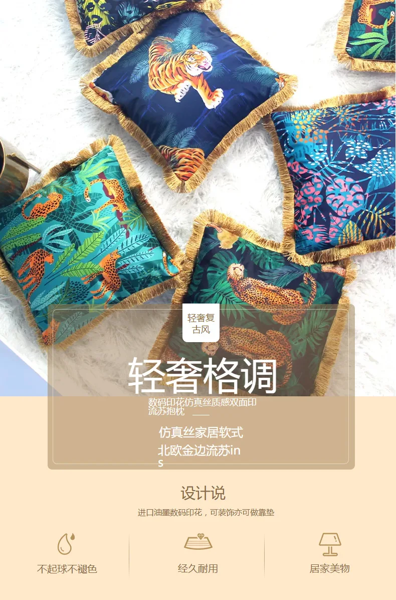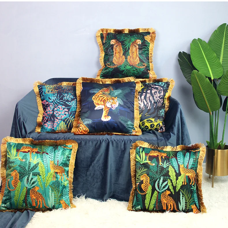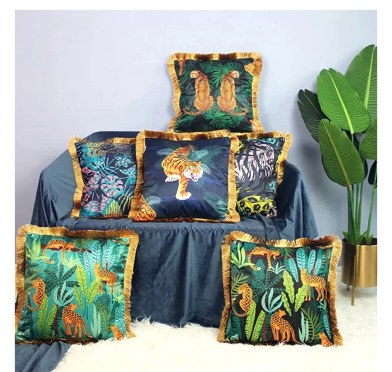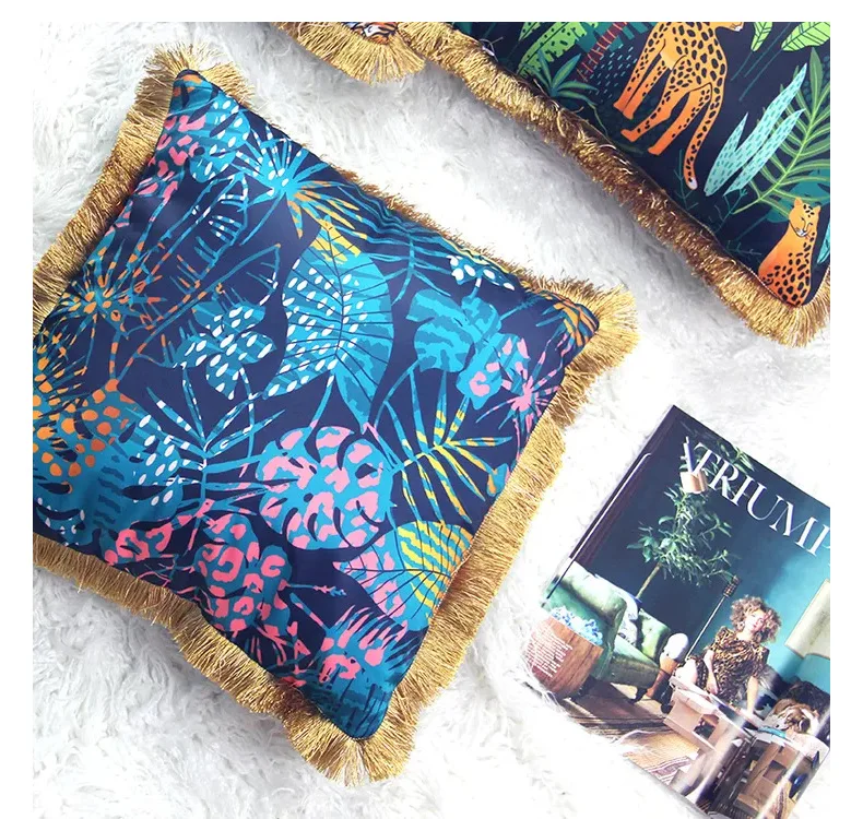 라이트 럭셔리 보타니카 골든 술 쿠션 커버 열대 우림 동물 허리 베개 케이스 레오파드 기거 아메리칸 베개 커버