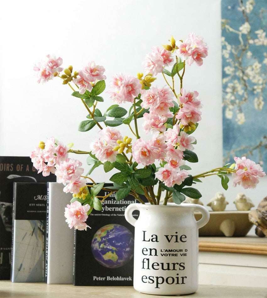 18Heads Sakura Cherry Blossoms Flower Branch 조화로 모든 공간을 꽃이 만발한 낙원으로 바꾸십시오. 크리스마스, 결혼식, 파티 또는 가정 장식에 완벽한 이 꽃은 모든 환경에 우아함과 아름다움을 더합니다. 패키지에는 나뭇가지 꽃이 한 송이 포함되어 있어 좋아하는 꽃병이나 용기에 쉽게 꽂을 수 있습니다. 고급 실크로 만든 이 꽃은 진짜처럼 섬세한 질감을 가지고 있습니다. 지금 주문하고 아름다움과 품질을 희생하지 않고 조화의 편리함을 즐기십시오!
