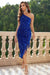 시퀸 프린지 비대칭 밑단 원 숄더 칵테일 드레스