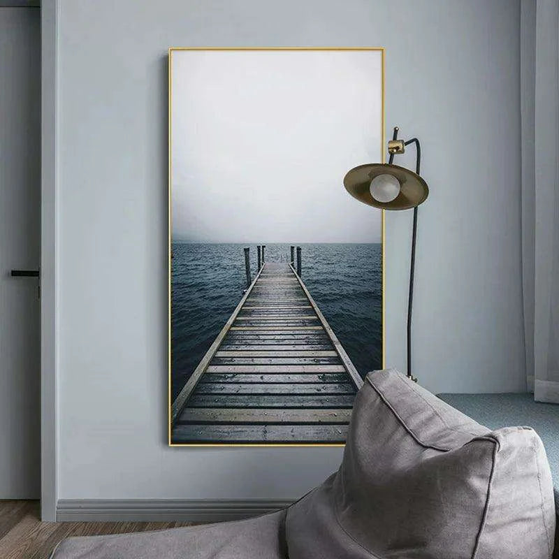 Coastal Elegance: Elevate your home decor with a touch of seaside charm. The Serene Nordic Coastal Pier Canvas Art serves as a striking focal point in any room, effortlessly enhancing the atmosphere with its coastal allure.