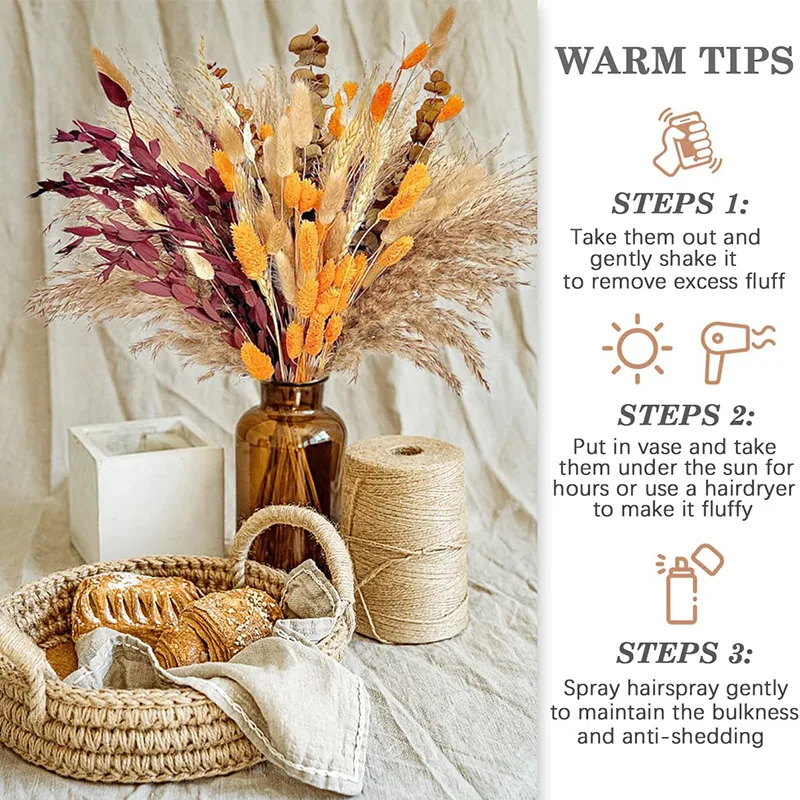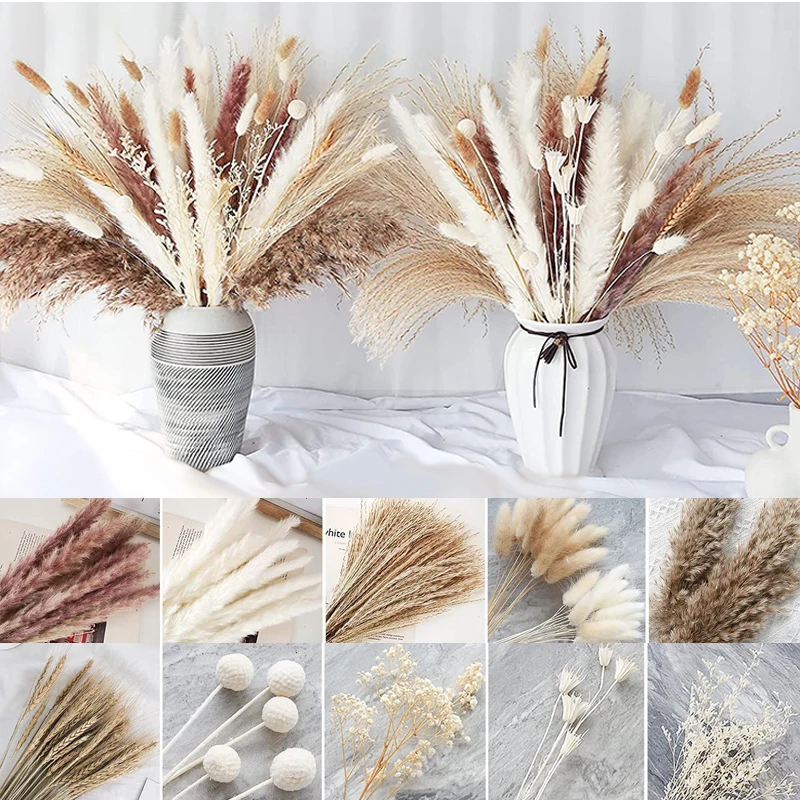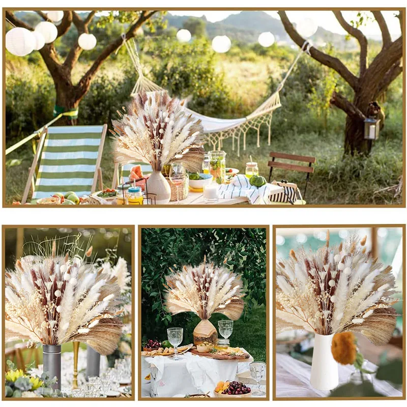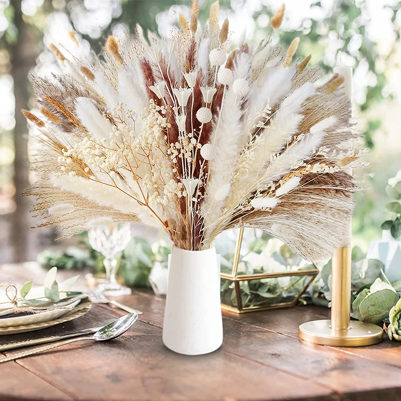자연 말린 팜파 잔디 솜털 꽃다발 Phragmites 말린 꽃 꽃다발 Boho 꽃 홈 웨딩 사무실 농가 장식