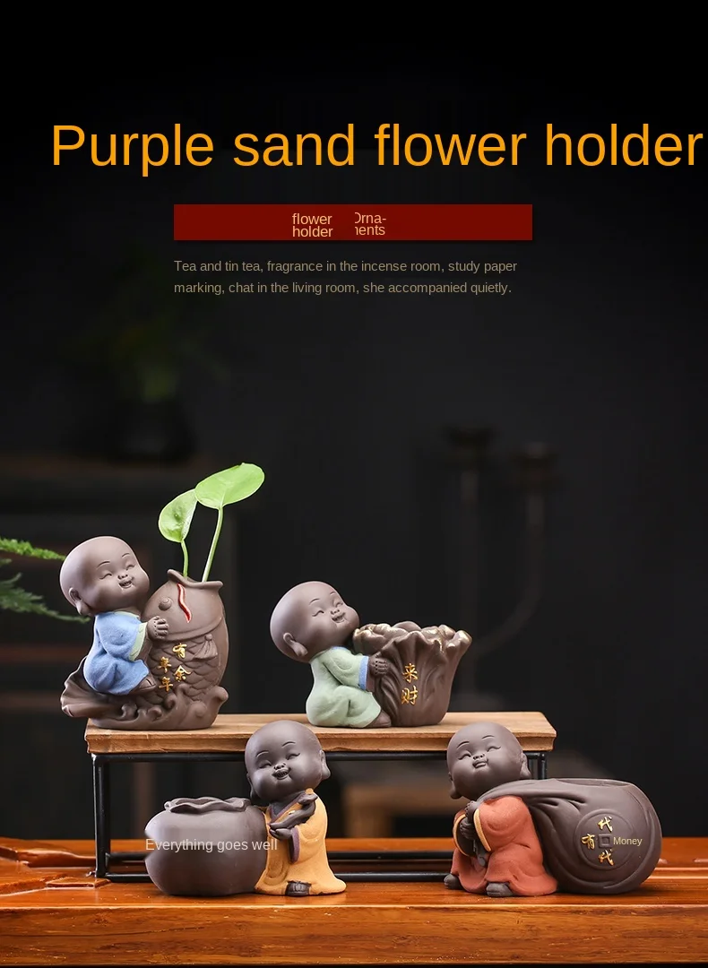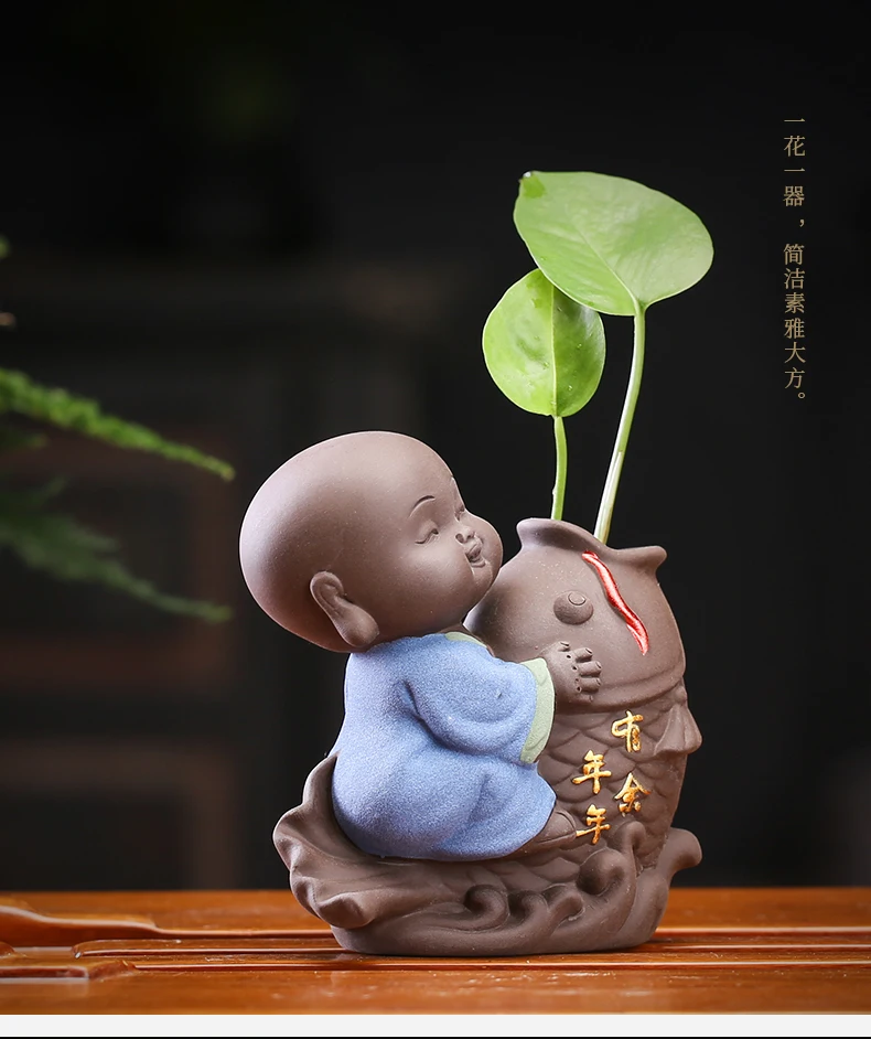 차 세트 액세서리 세라믹 차 애완 동물 장식 작은 불상 스님 인형 데스크탑 꽃 냄비 수경 식물 장식