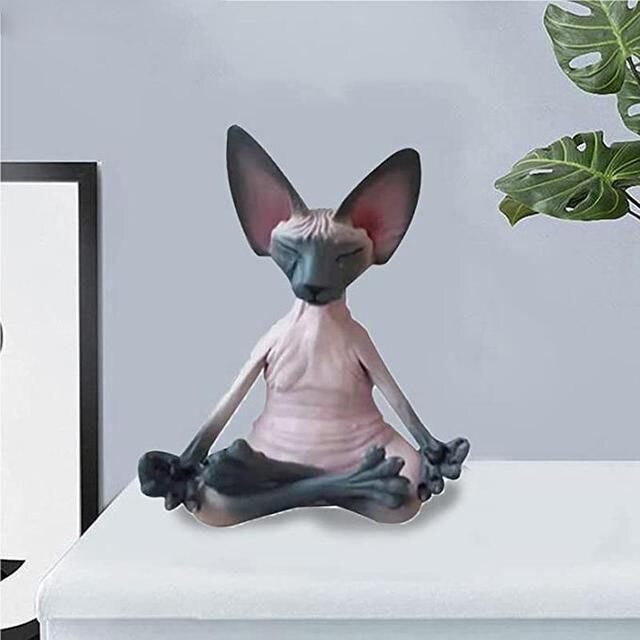 홈 오피스 장식 고양이 명상 소장 인형 미니어처 부처님 고양이 입상 동물 모델 인형 장난감 사나이 고양이 입상