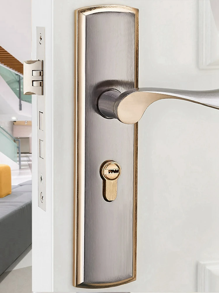 손쉬운 열쇠 잠금 해제와 마음의 평화를 위해 설계된 알루미늄 사일런트 하우스 잠금 장치로 집 보안을 업그레이드하세요. 내구성이 뛰어난 알루미늄으로 제작되었으며 티타늄 블랙 골드 마감이 특징인 이 자물쇠는 스타일과 기능성이 완벽하게 조화를 이루고 있습니다. 실내 도어에 적합하며, 쉬운 설치와 안정적인 작동을 위해 필요한 모든 구성 요소가 완비되어 있습니다.