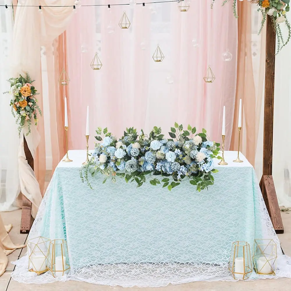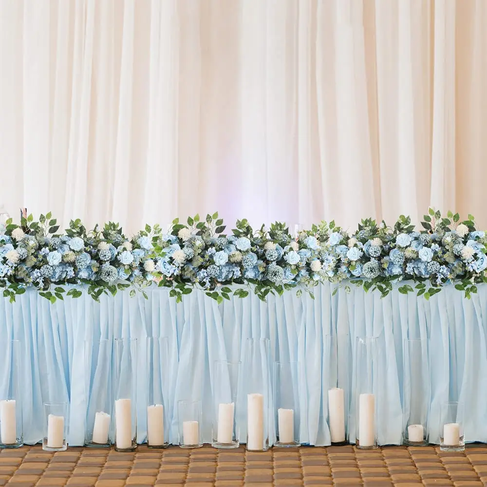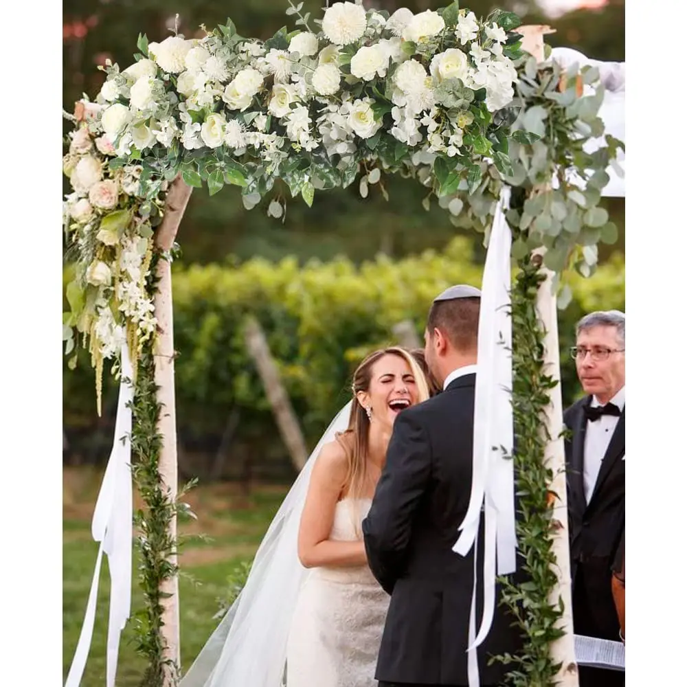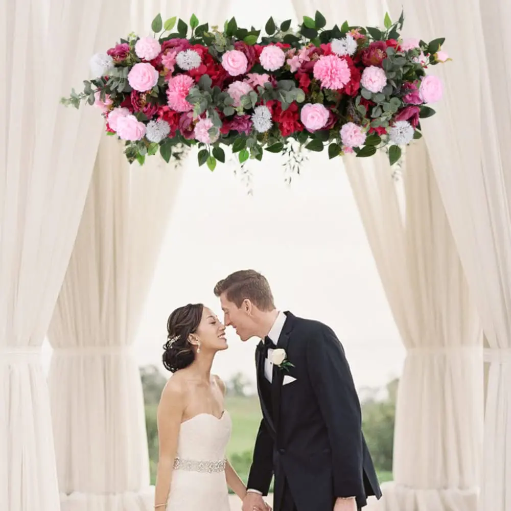 【프리미엄 소재】이 꽃 줄과 꽃 볼은 플라스틱 프레임이 있는 흰색, 샴페인, 라이트 핑크, 핑크, 블루, 퍼플, 레드 인공 실크 장미 꽃, 수국 꽃, 실크 유칼립투스 잎으로 만들어집니다.