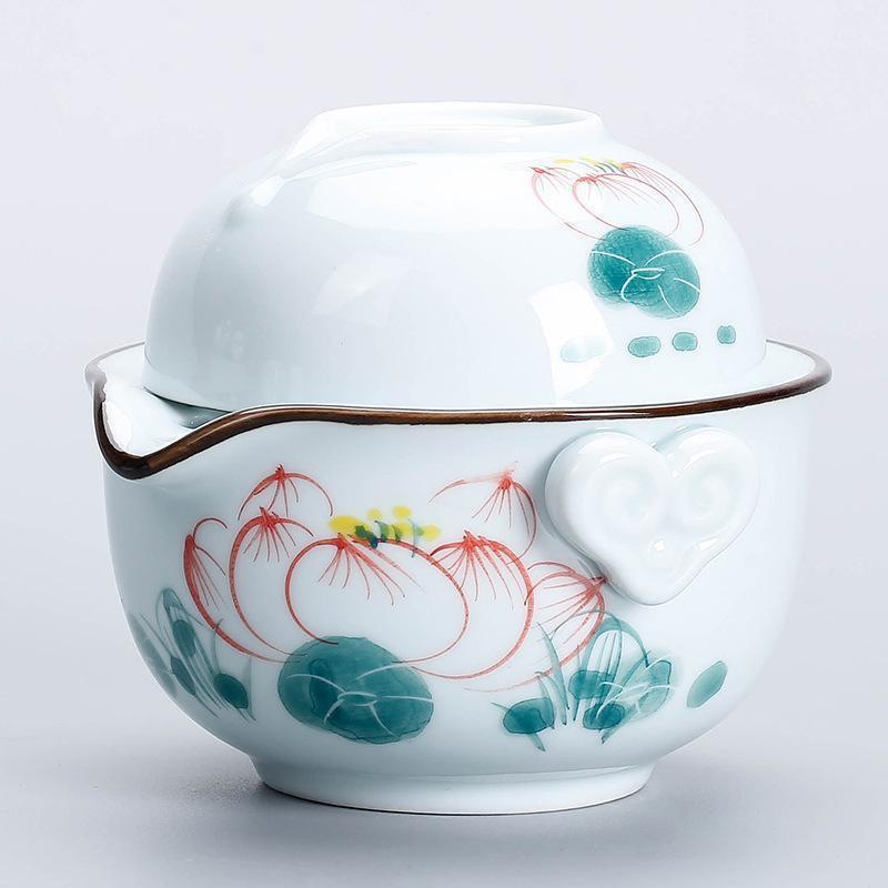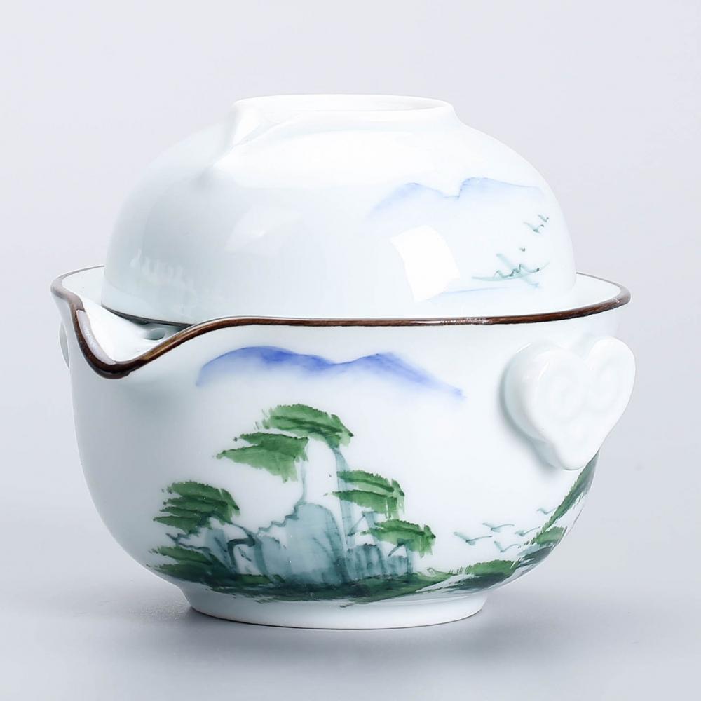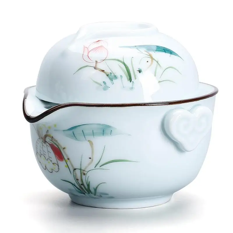 - 도자기 찻잔, 찻주전자, 휴대용 찻그릇, 다기 액세서리가 포함되어 있습니다.