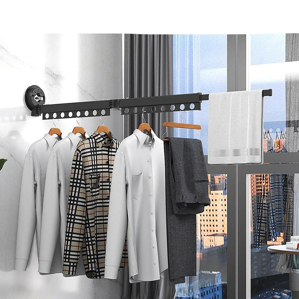 옷 걸이 알루미늄 접는 옷 걸이 검은 벽 마운트 걸이 건조 랙 빨판 설치 옷 조직 WB3022