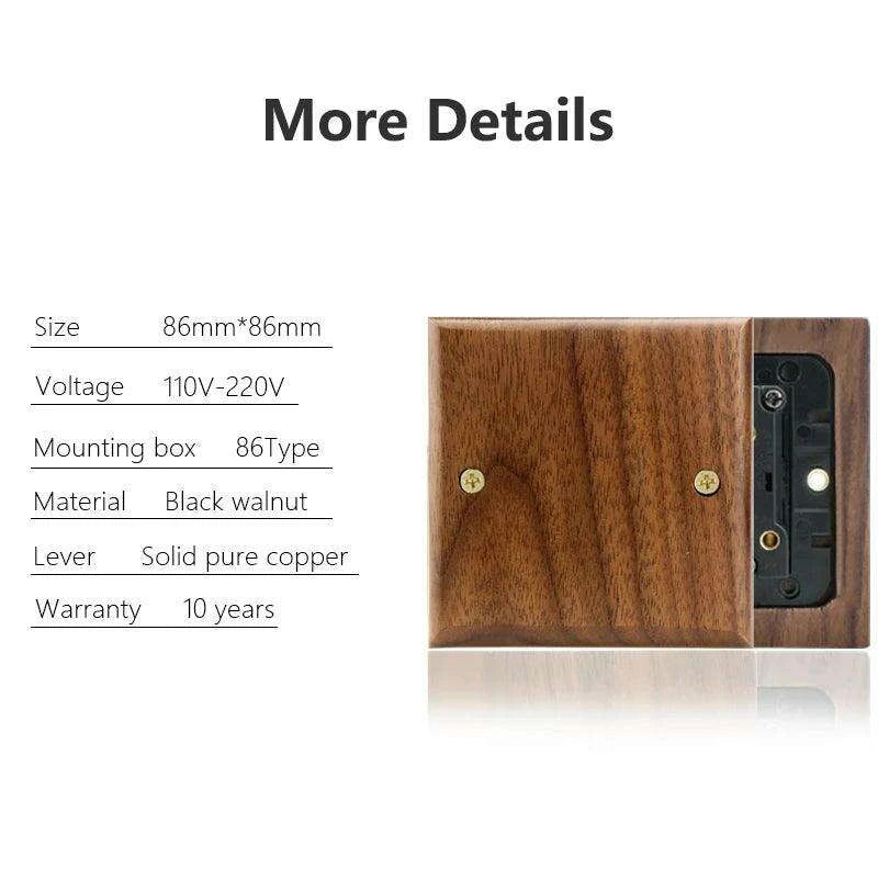 Modern Black Walnut Electrical Panel with USB Charging Ports, Adjustable LED Lighting, and Stylish Toggle Design