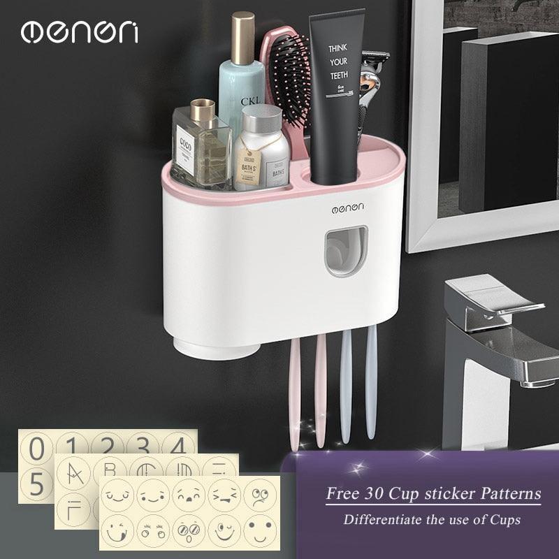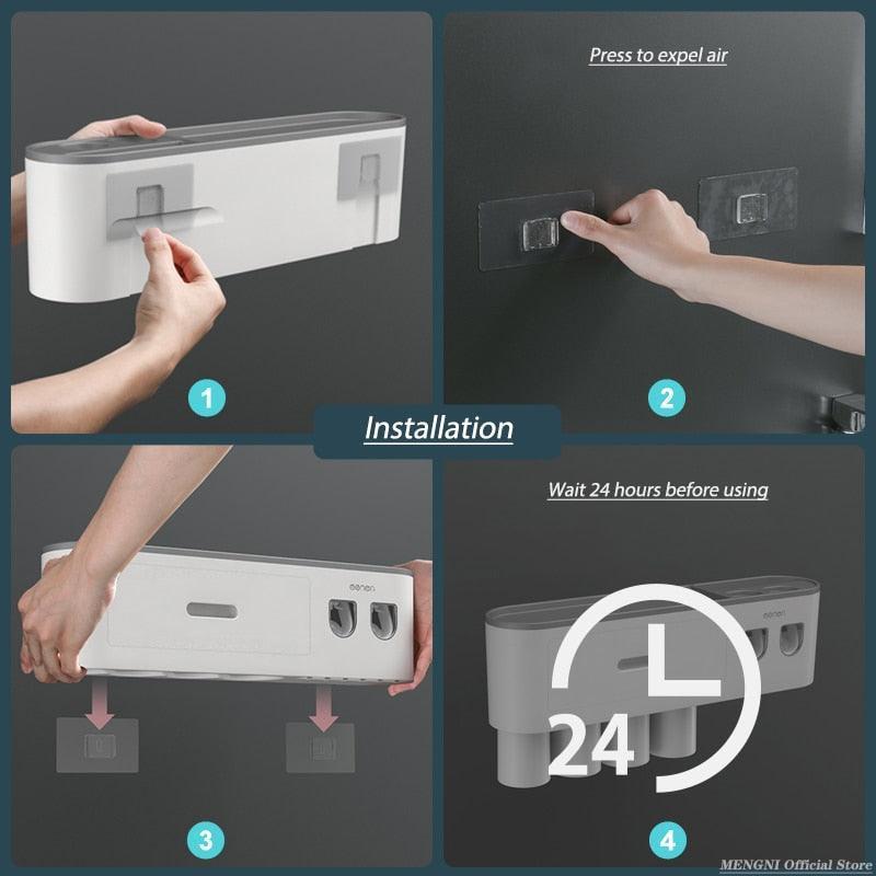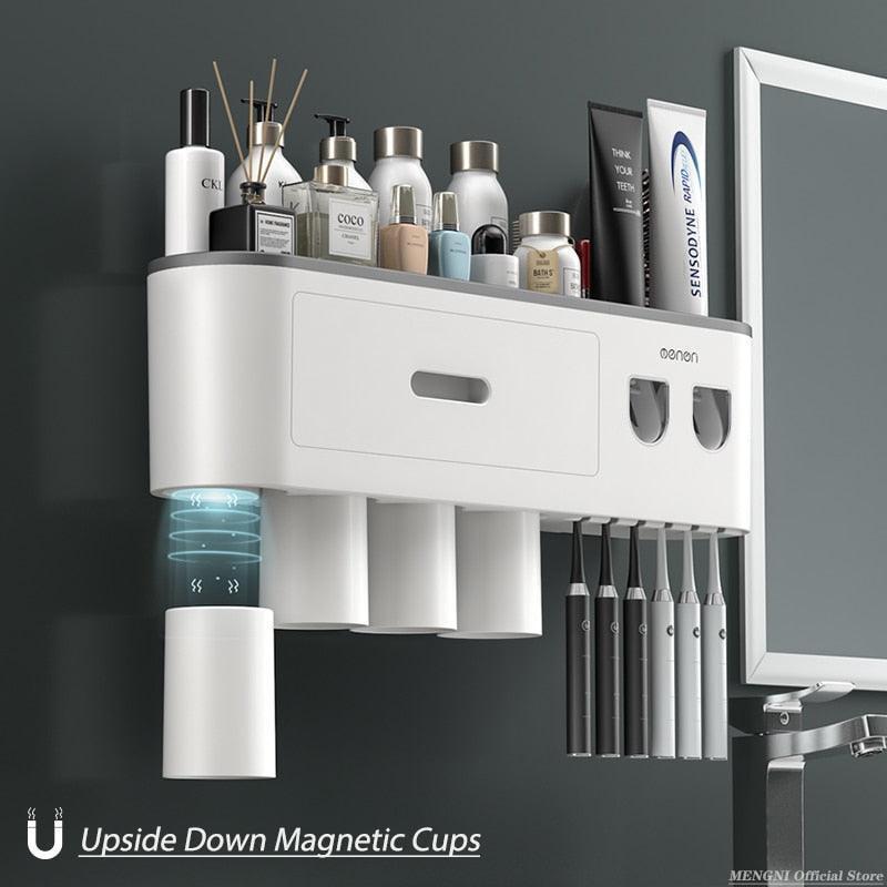 자기 흡착 거꾸로 된 칫솔 홀더 벽 - 자동 치약 압착기 보관함