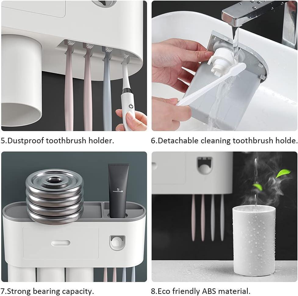 지저분한 욕실 카운터에 작별을 고하고 정리된 단순성에 인사하십시오. 이 칫솔 홀더는 칫솔과 치약을 제자리에 깔끔하게 보관할 뿐만 아니라 면도기와 기타 품목을 위한 추가 보관 공간을 제공합니다. 자동 치약 압착기와 마그네틱 컵 디자인으로 일상의 편리함과 청결을 중시하는 모든 이들의 머스트 해브 아이템입니다.