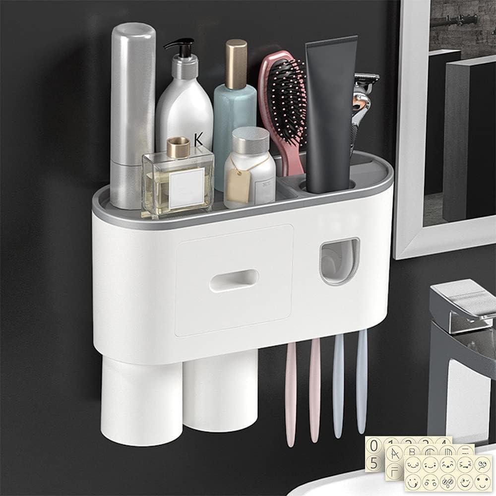 이 다기능 칫솔 홀더로 욕실을 정리하고 깔끔하게 유지하세요. 자동 치약 압착기, 서랍 보관함, 면도기 보관함, 빠르게 물을 배출하고 컵을 건조하고 깨끗하게 유지하도록 설계된 2개의 자석 칫솔 컵이 포함되어 있습니다. 친환경 ABS 소재로 제작되어 튼튼하고 오래가는 칫솔꽂이입니다. 구멍 없는 설치 방법으로 벽에 자국을 남기지 않고 쉽게 설치할 수 있습니다.