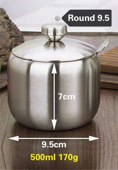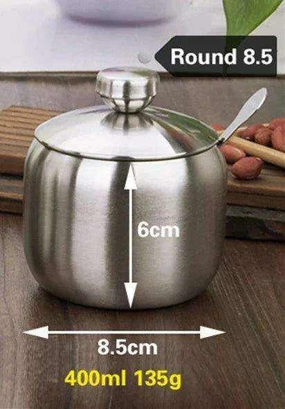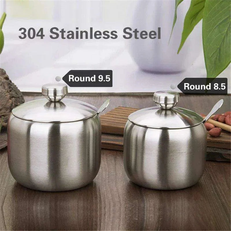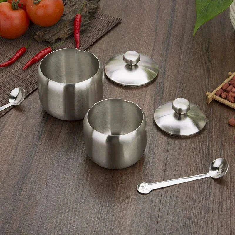 Sleek Stainless Steel Spice Storage and Dispensing Set with Spoon
