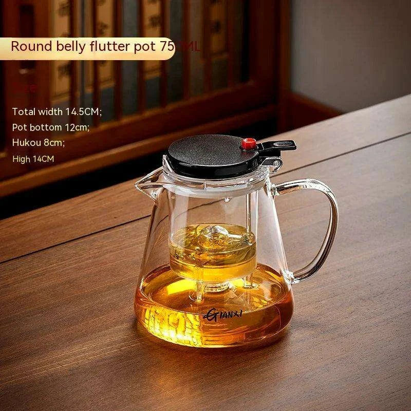 Elegant Glass Teapot Set with Easy Pour Water Release and Removable Filter - 750ml Round Teapot with Cups