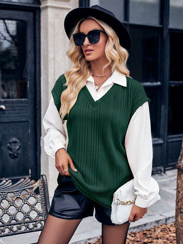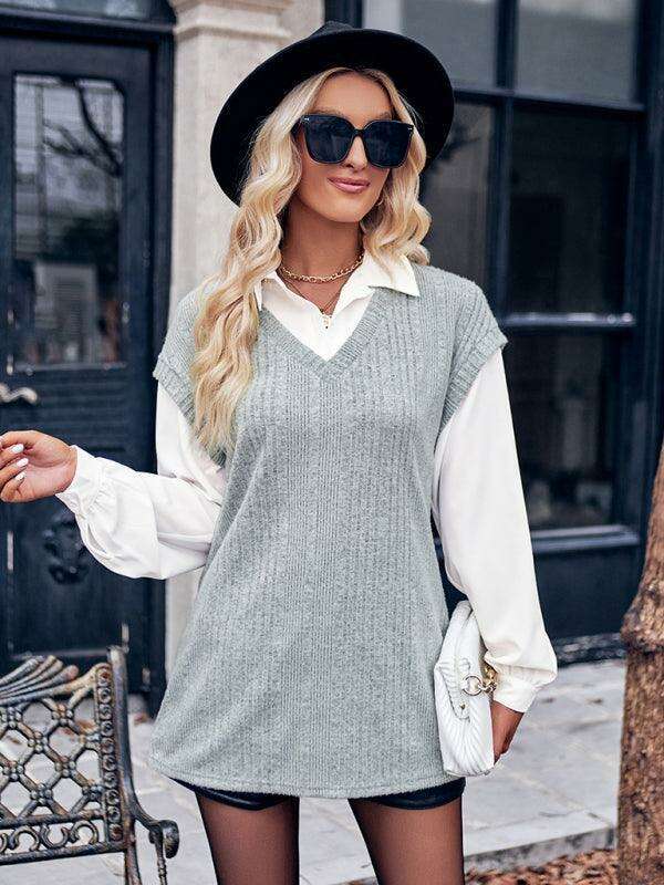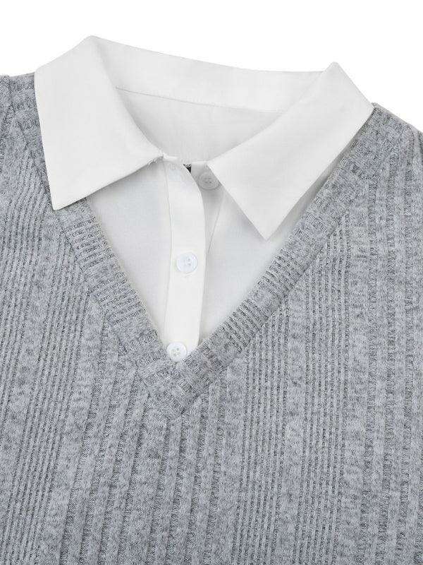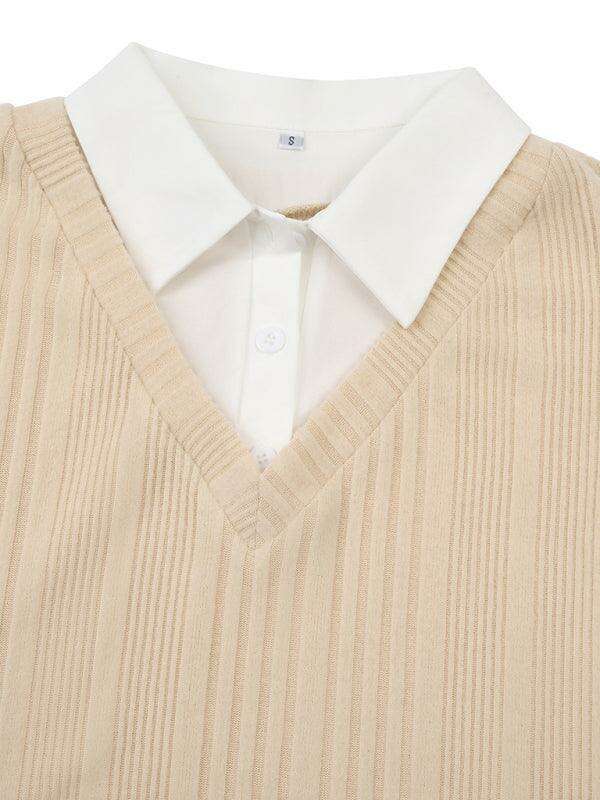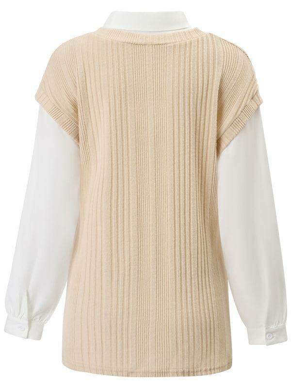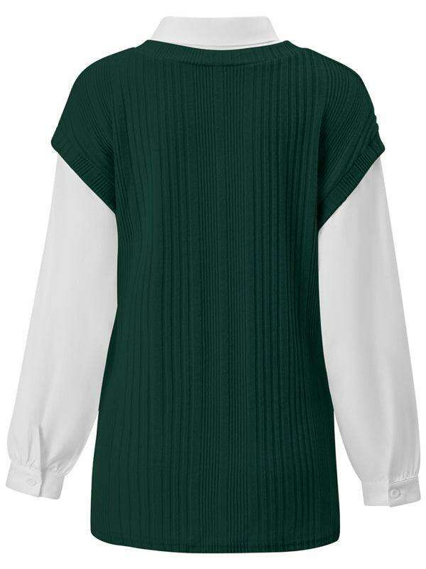 Jakoto신상 여성 신상품 캐주얼 솔리드 컬러 페이크 투피스 슬림 탑