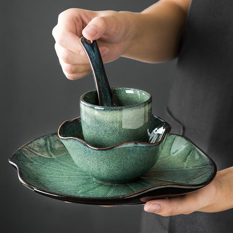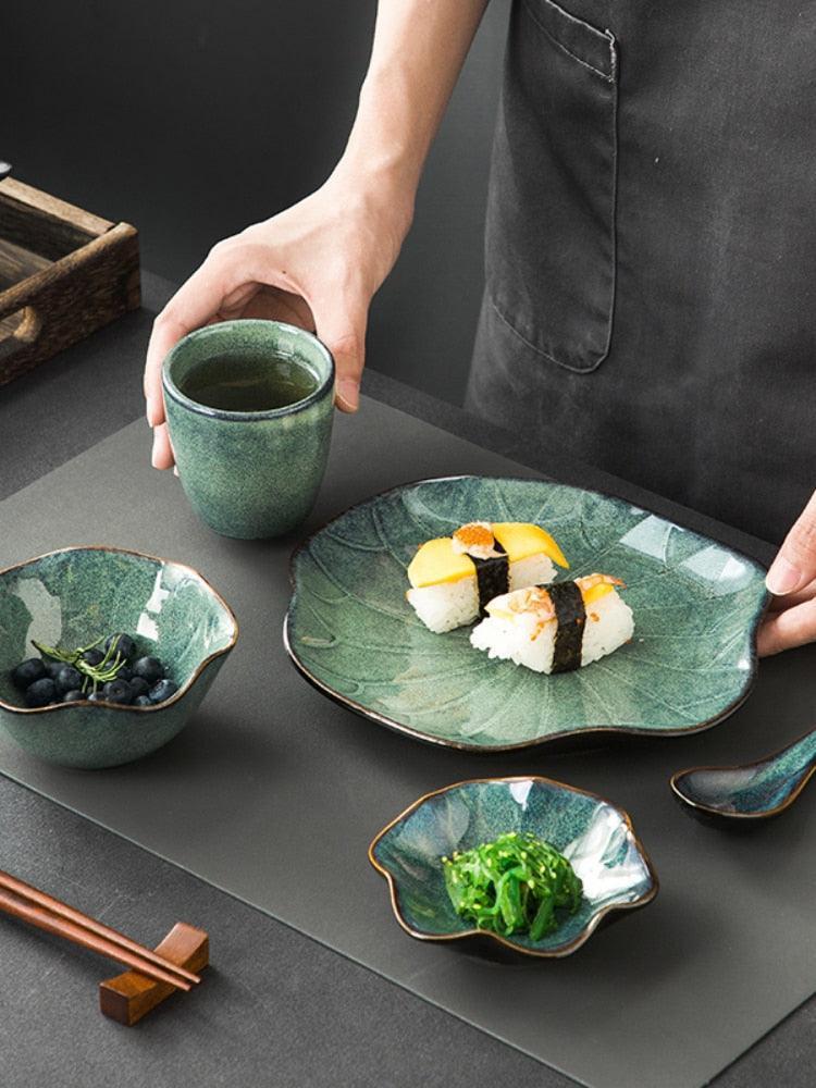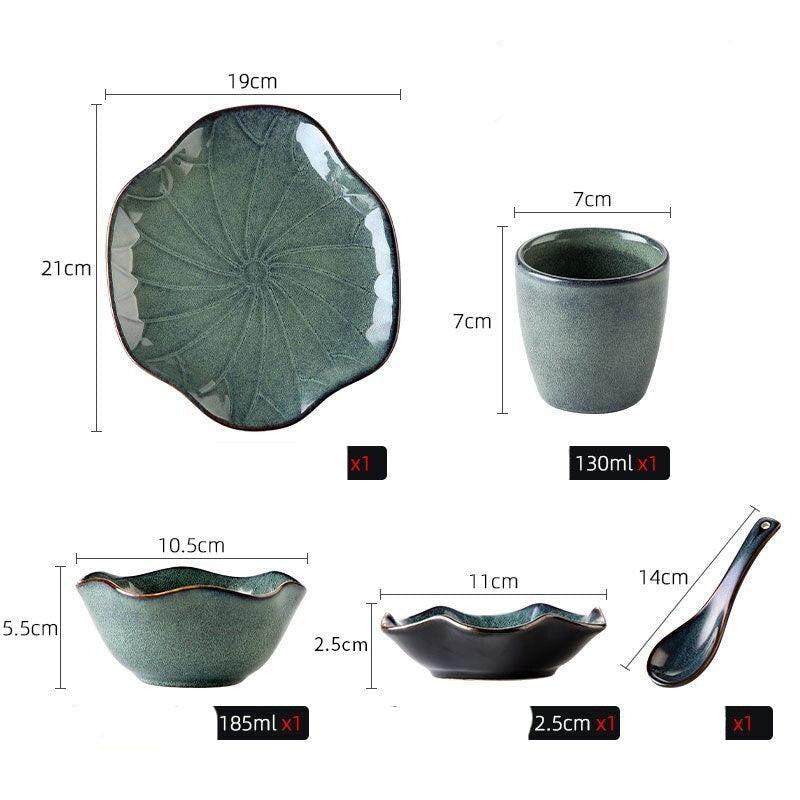 일본식 로터스 리프 호텔 빈티지 다이닝 세트, 1인용 레스토랑용 가마 교체 식기 포함, 그릇, 스푼, 컵 포함
