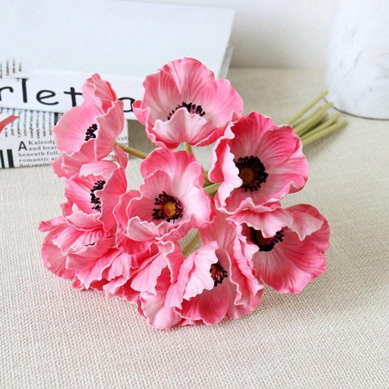 고급 PU 양귀비 인공 꽃 10개 묶음