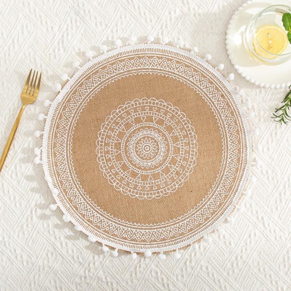 라운드 우븐 면 플레이스매트 - 커피 컵과 식기에 적합