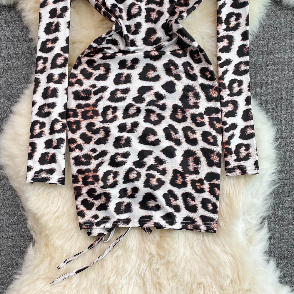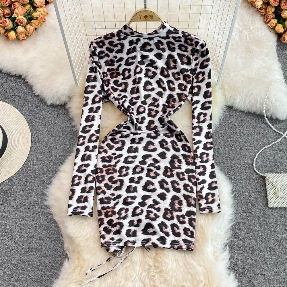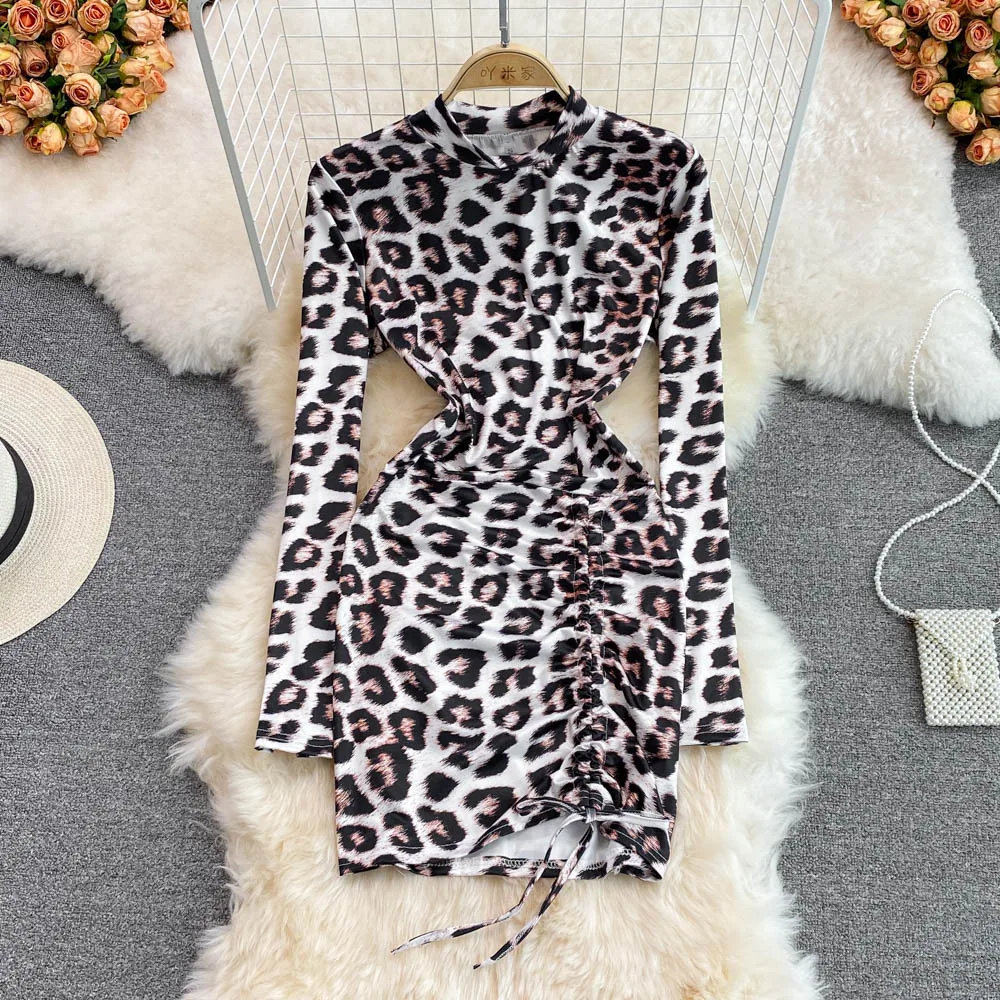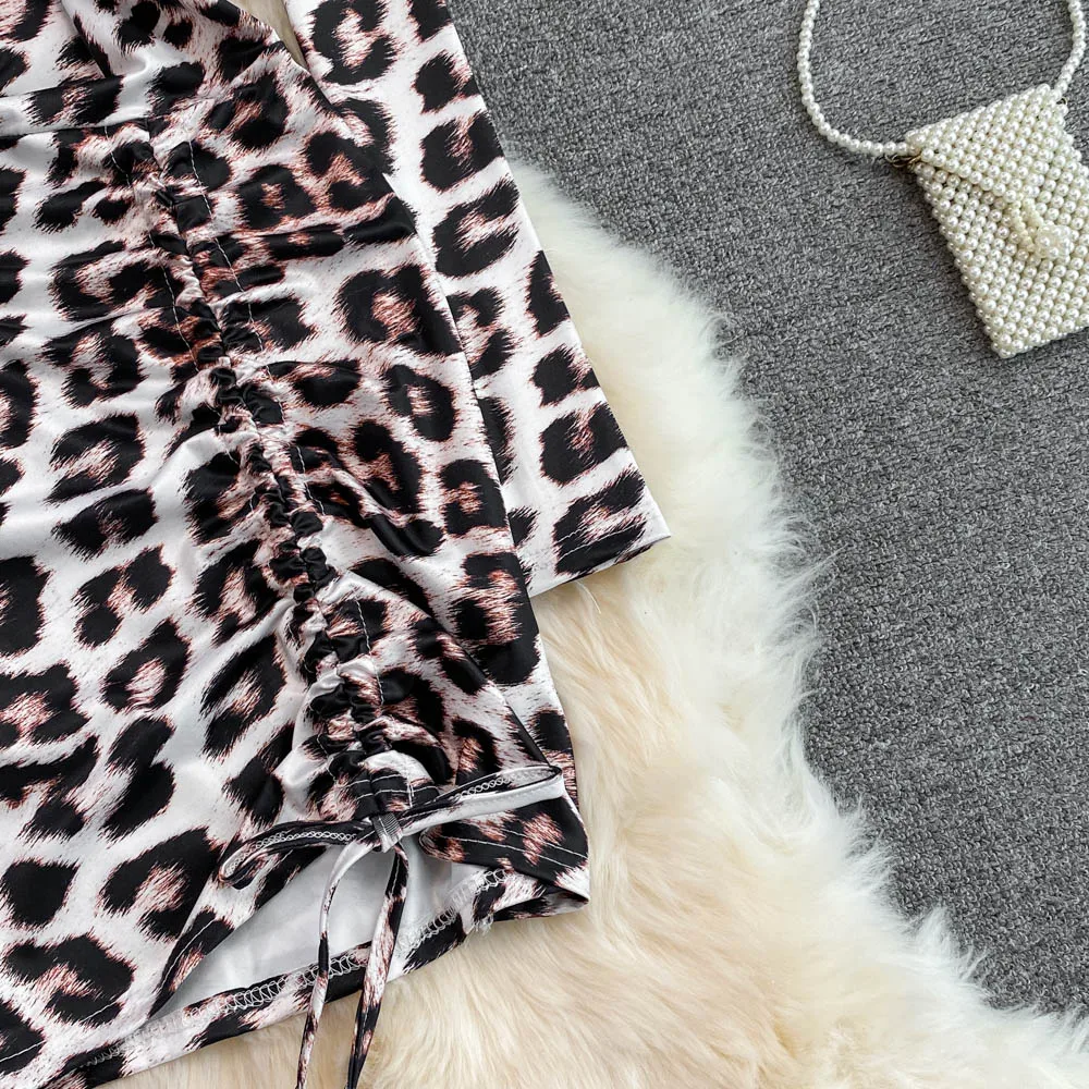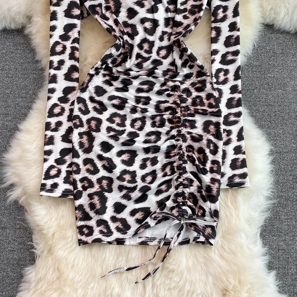 절묘한 Foamlina 레오파드 프린트 주름 장식 Bodycon 미니 드레스