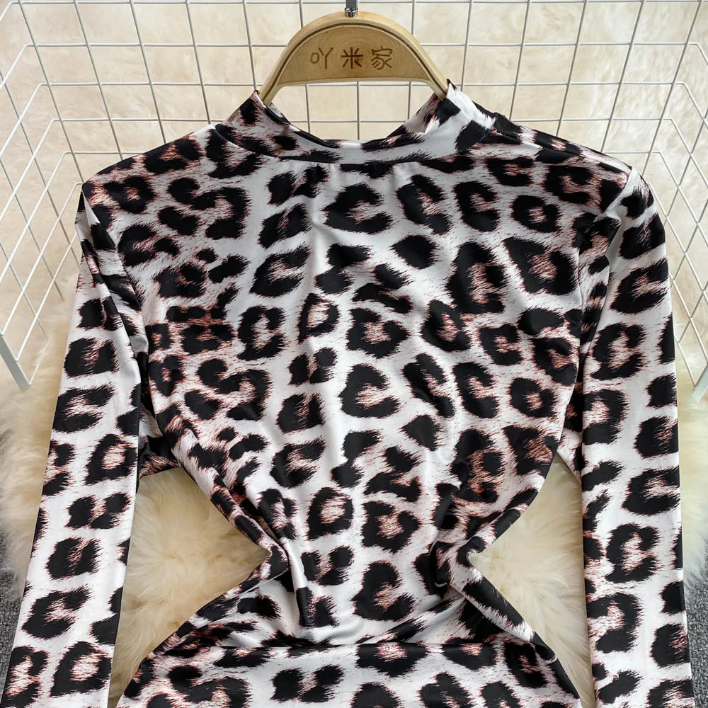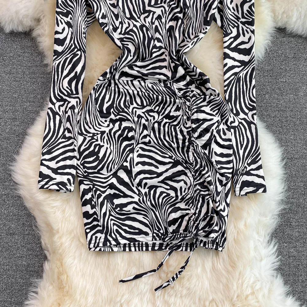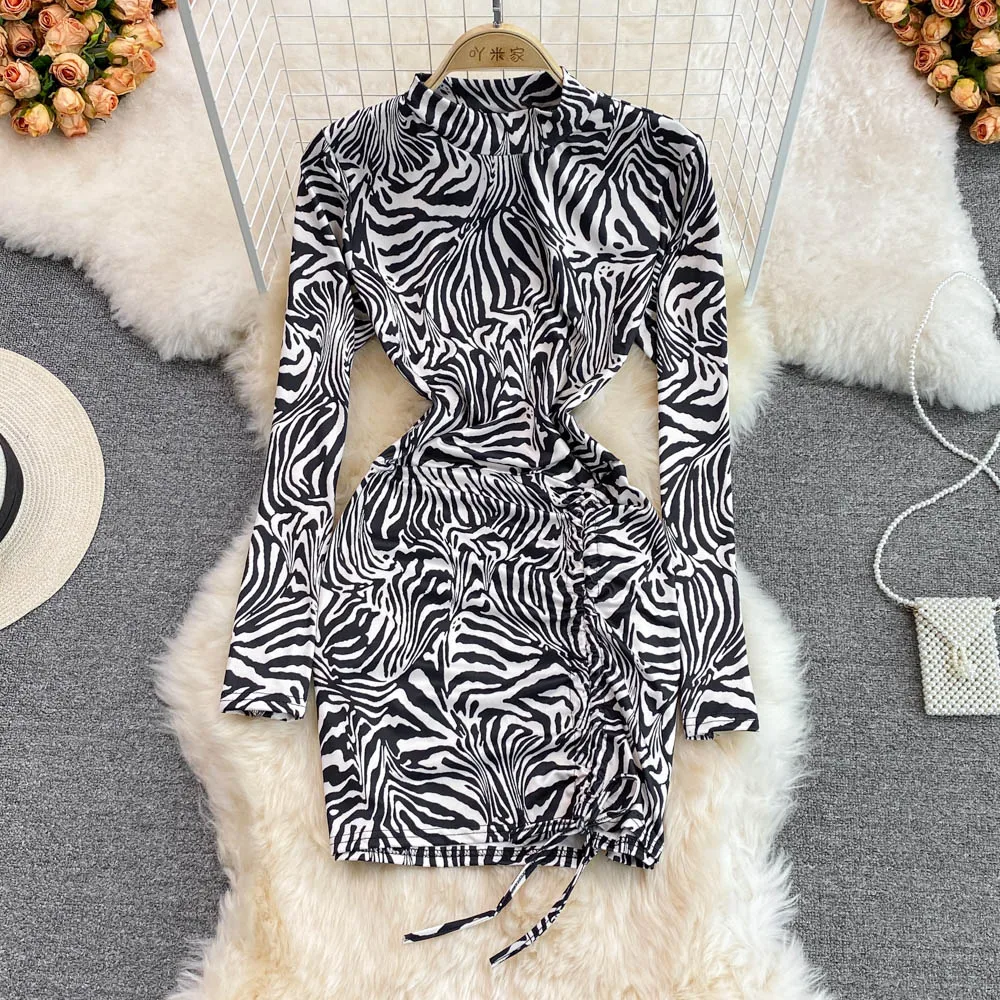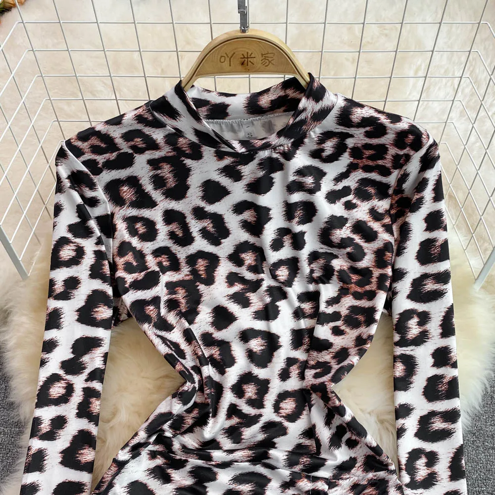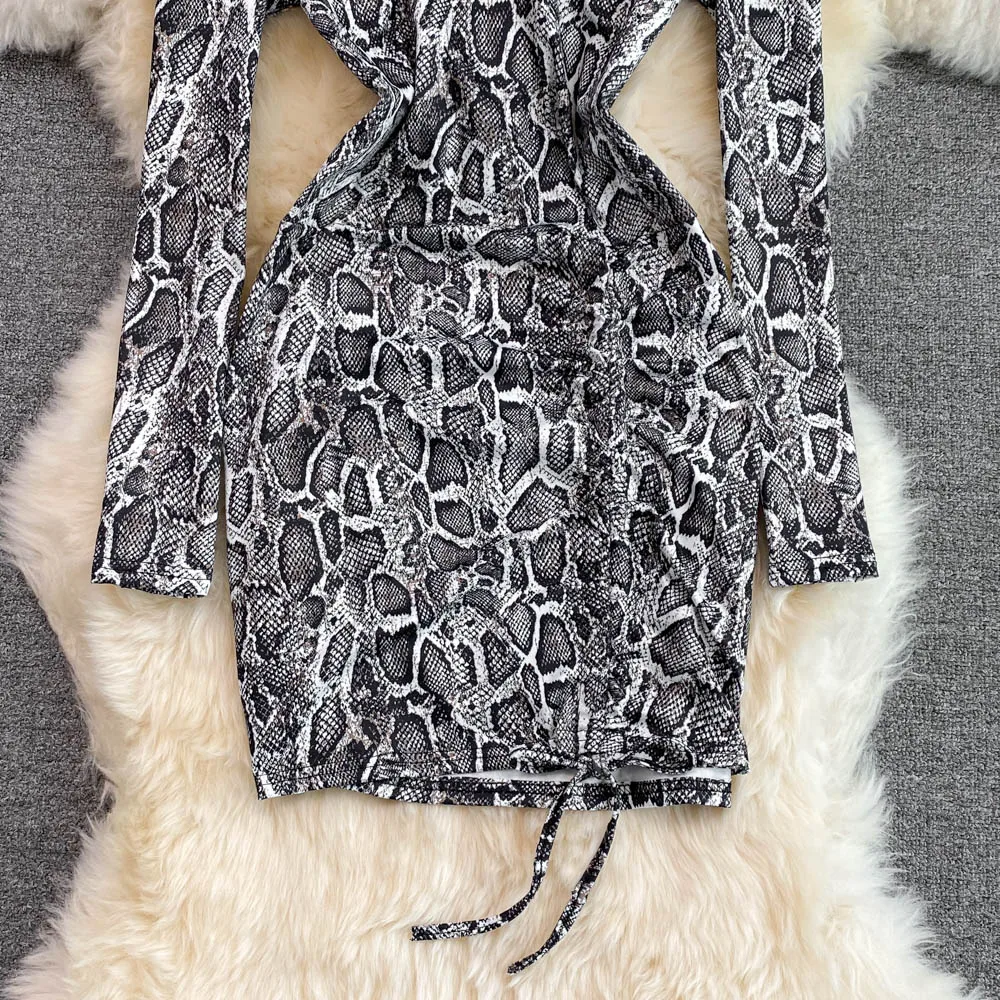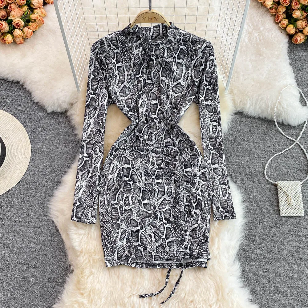 절묘한 Foamlina 레오파드 프린트 주름 장식 Bodycon 미니 드레스