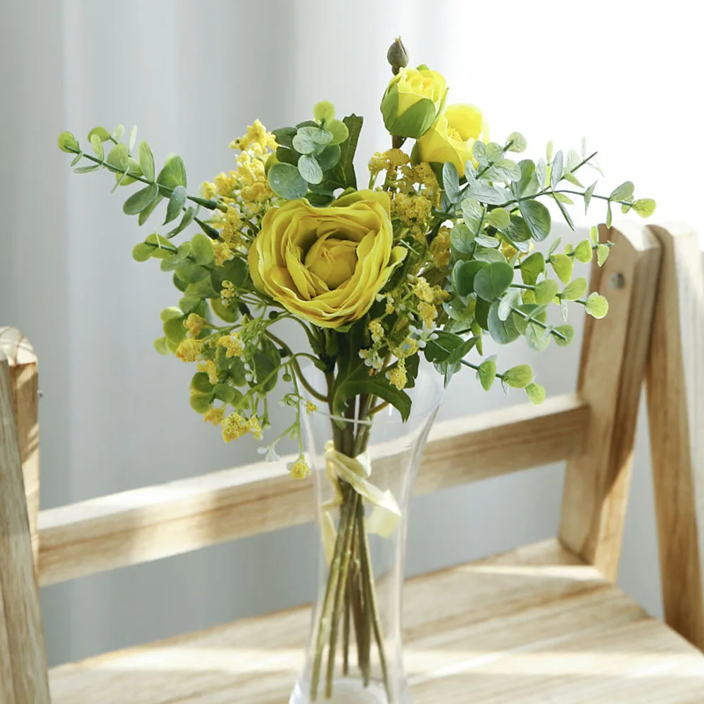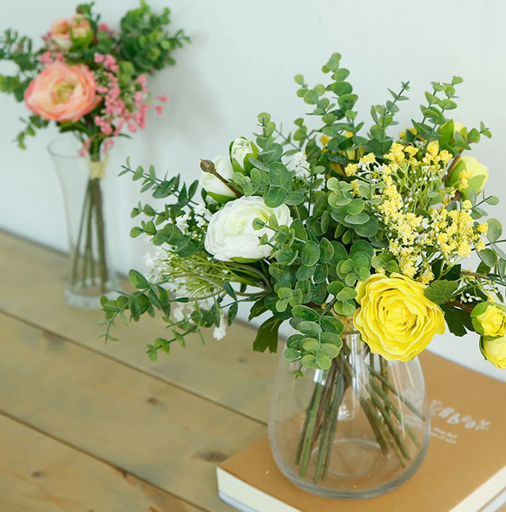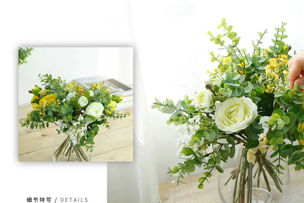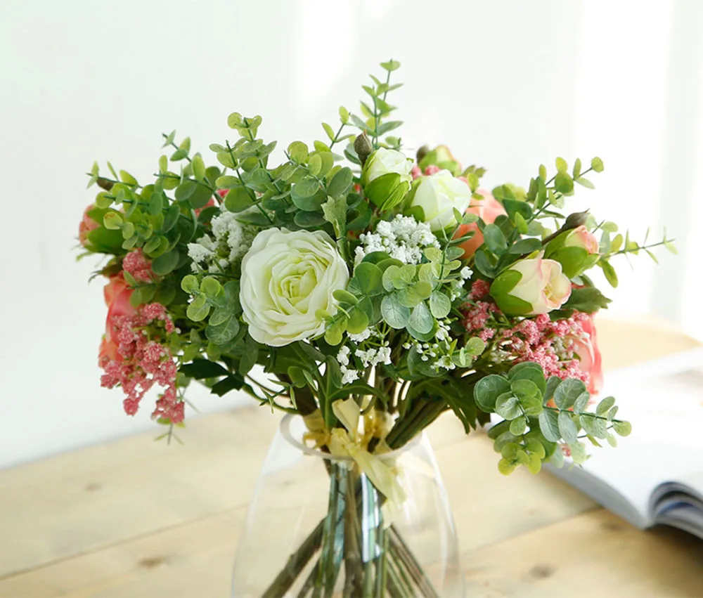 미리 만든 실크 인공 장미 꽃 Gypsophila 뭉치 결혼식 홈 가을 장식 고품질 큰 꽃다발 럭셔리 보타니카 가짜 꽃