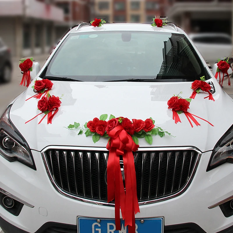 인공 꽃 실크 장미 꽃과 문 손잡이 결혼식 꽃 장식 자동차