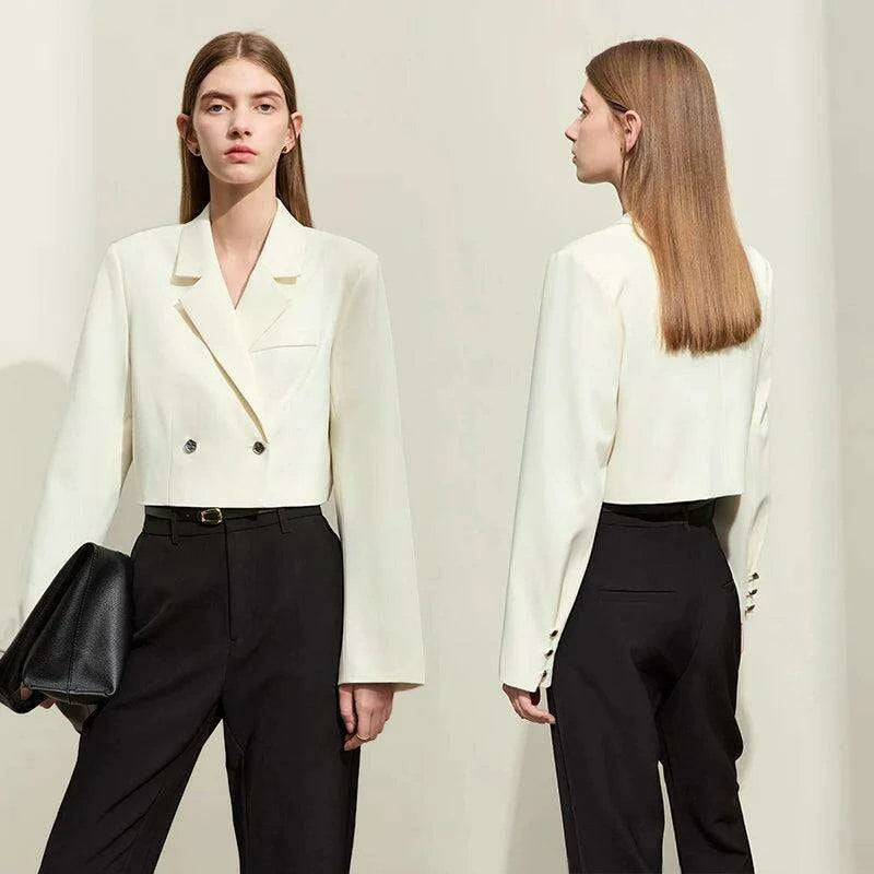 Sophisticated Spring Short Blazer with Structured Shoulder Pads - Chic Professional Outerwear