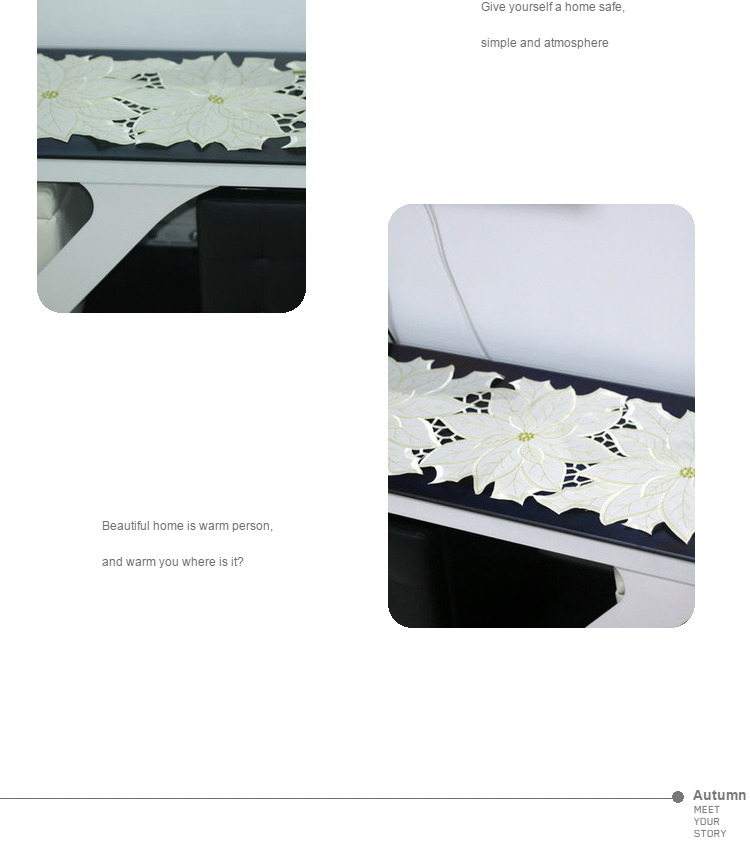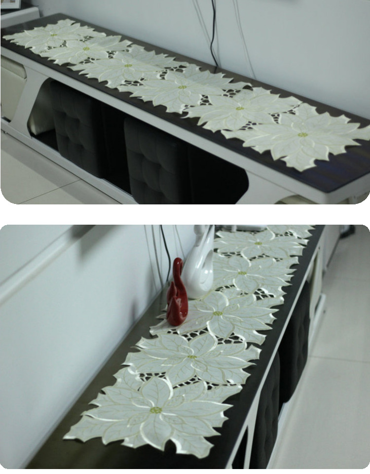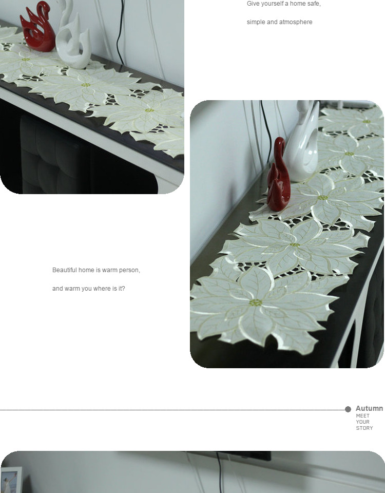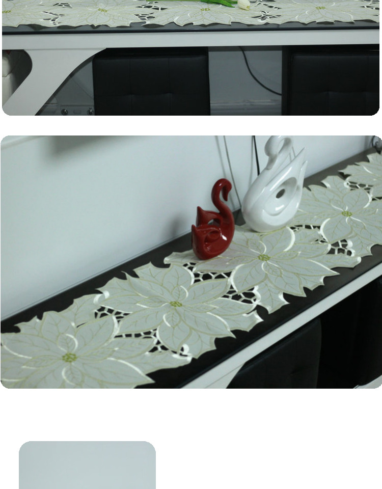 매우 우아한 자수 테이블 러너로 가정 장식을 한 단계 업그레이드하세요. 이 아름다운 작품은 테이블이나 TV 캐비닛에 세련미를 더하는 독특한 속이 빈 자수 디자인이 특징입니다. 고품질의 흰색 천으로 제작된 이 테이블 러너는 특별한 날, 휴일 또는 일상적인 사용에 적합합니다. 평범한 테이블 러너에 안주하지 마세요. 오늘 우아한 자수 테이블 러너로 개성을 표현하세요!