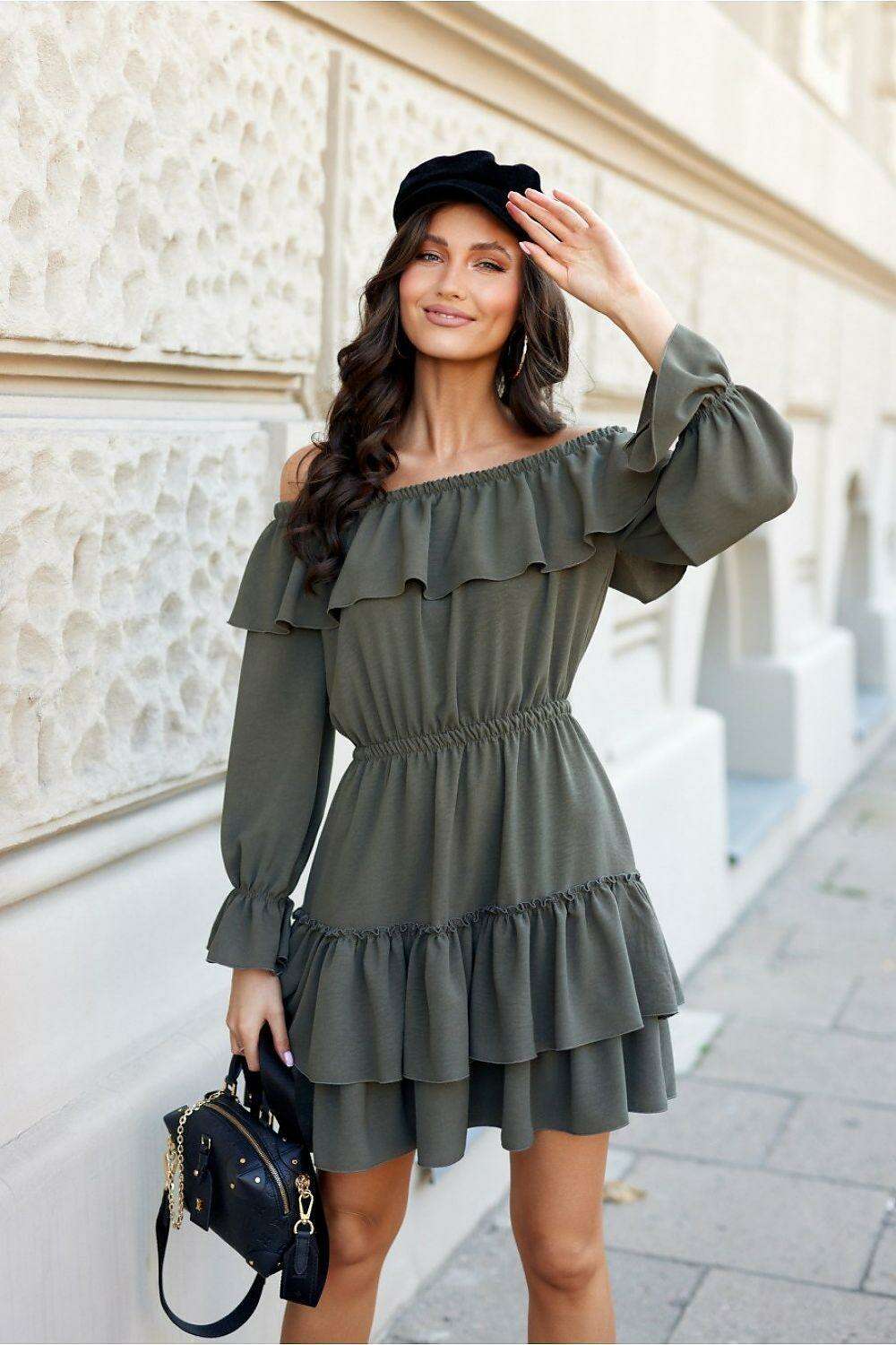 Spanish Chic Daydress with Flared Ruffles and Elegant Sleeves