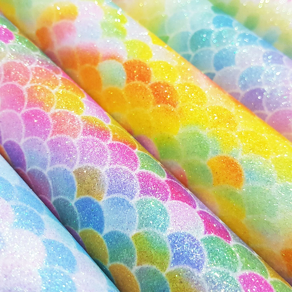 QIBU 50x120cm 마당에 의해 인어 반짝이 패브릭 가방에 대 한 큰 크기 다채로운 가짜 가죽 공예 재료 DIY Hairbow 액세서리