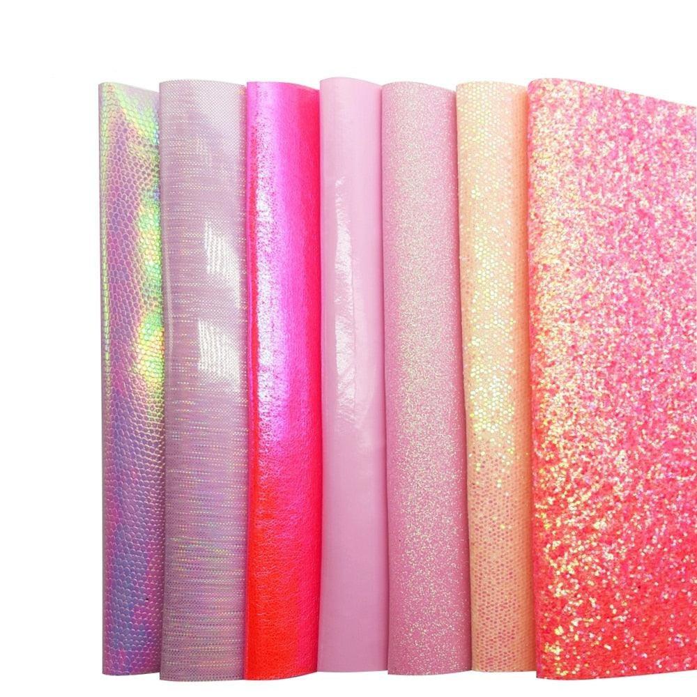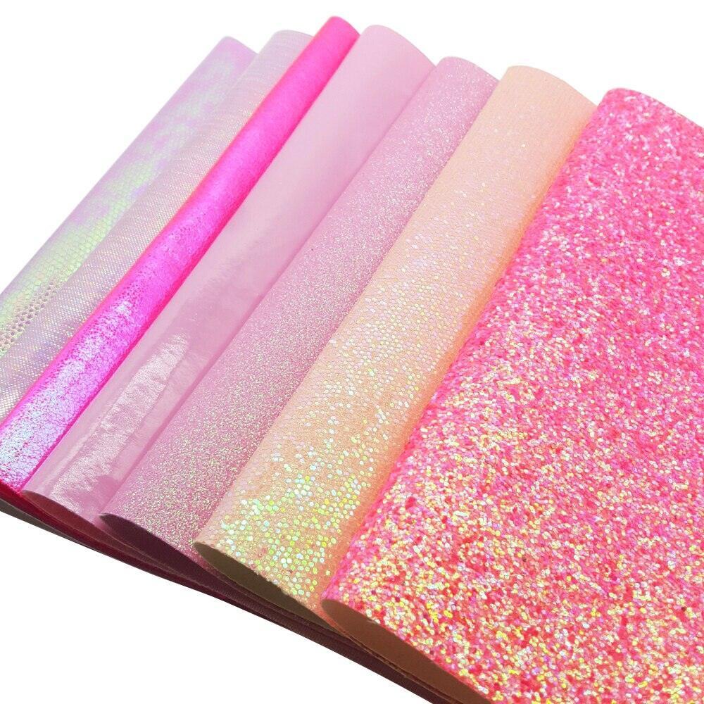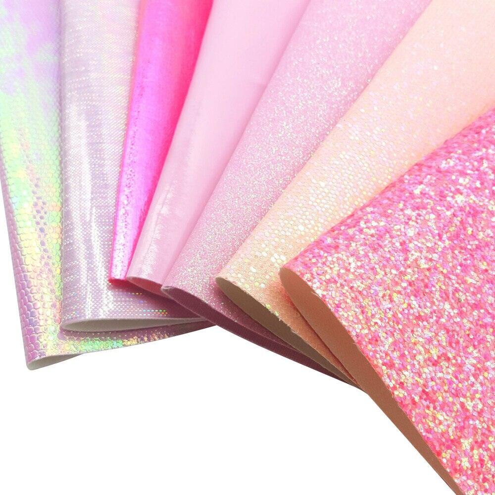 QIBU 핑크 Chunky 반짝이 가짜 가죽 시트 활 액세서리에 대 한 멀티 재료 신발 가방에 대 한 DIY 비닐 직물 합성 직물