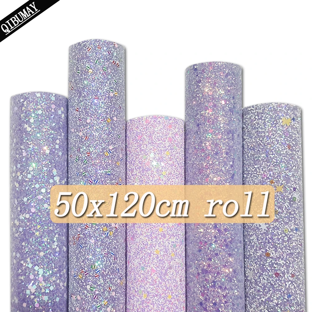 QIBU 50x120cm 보라색 가짜 가죽 롤 반짝이 Chunky 반짝이 패브릭 마당에 의해 DIY Hairbow 액세서리 가방 장식을위한 공예 재료