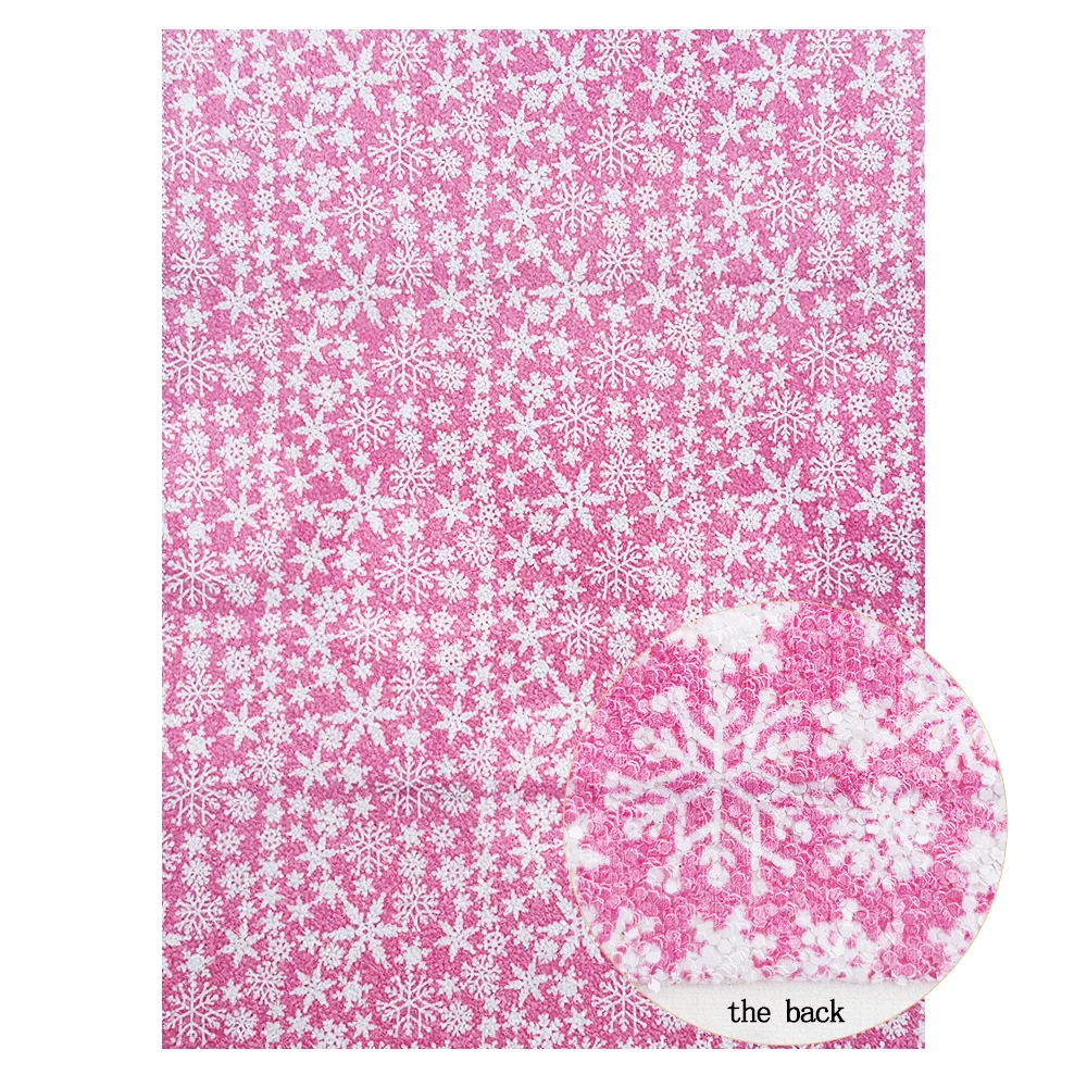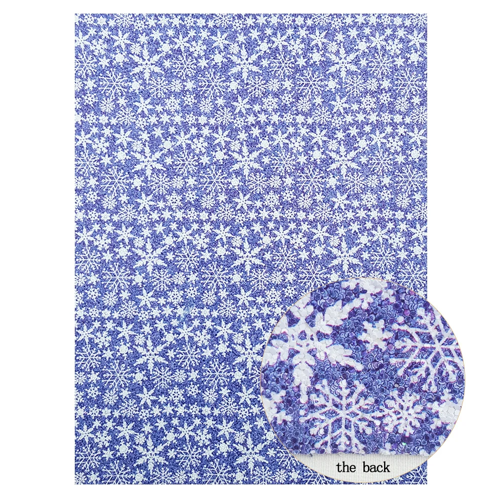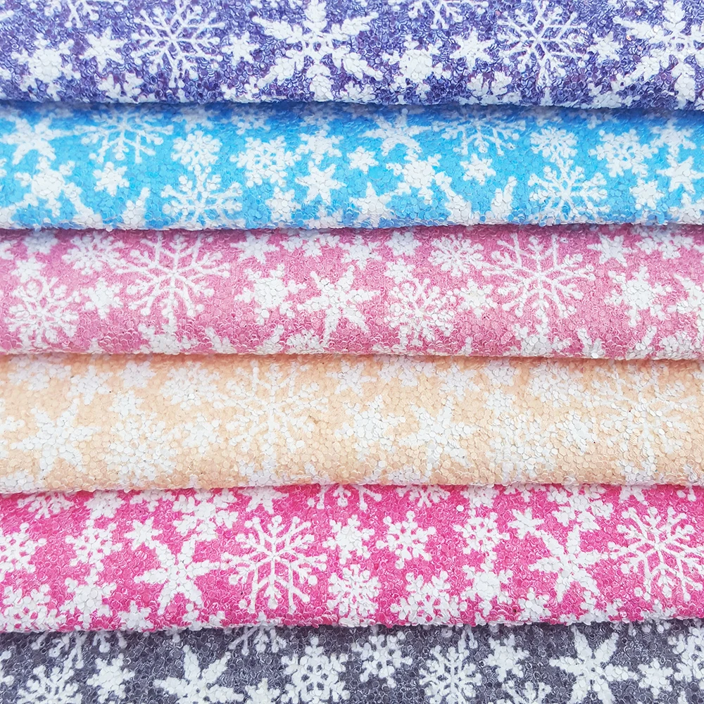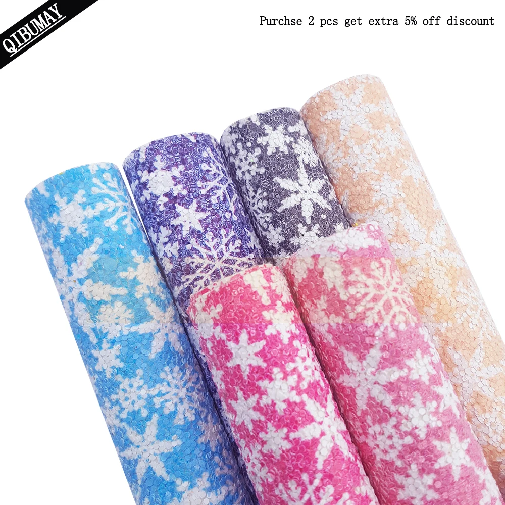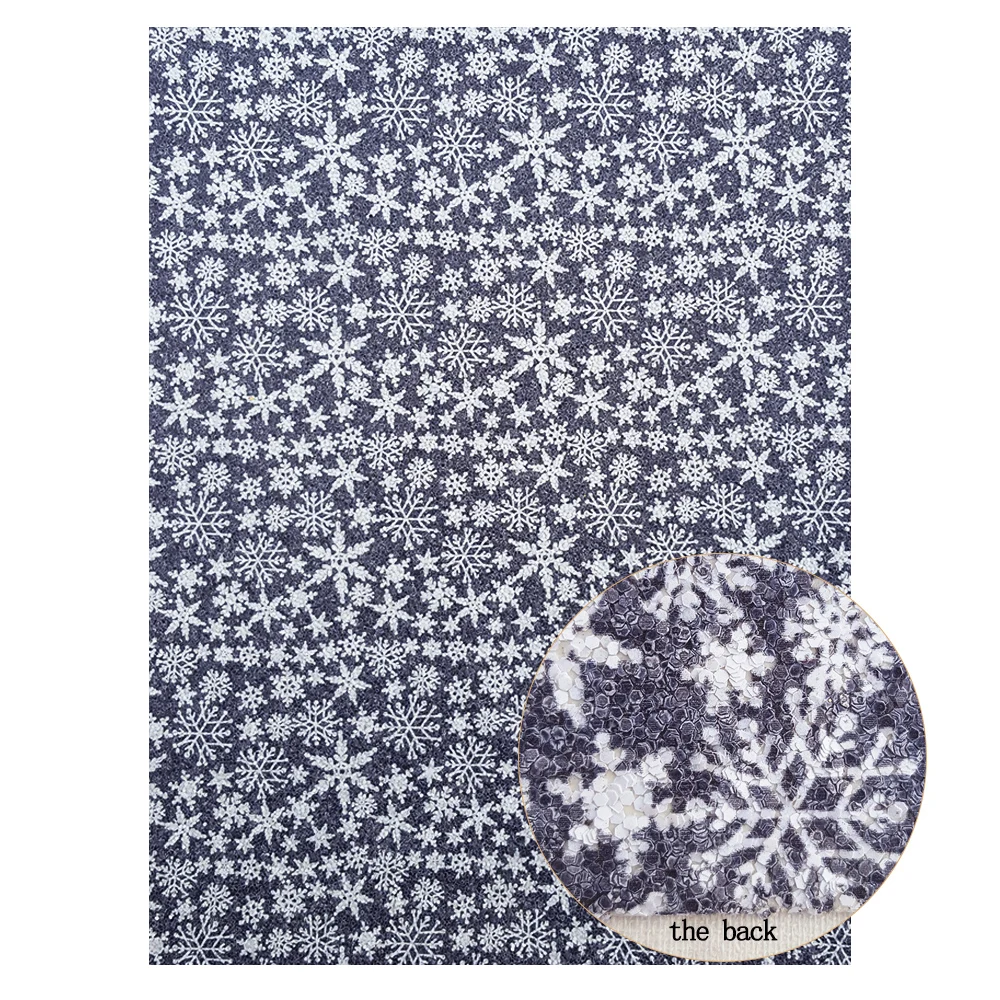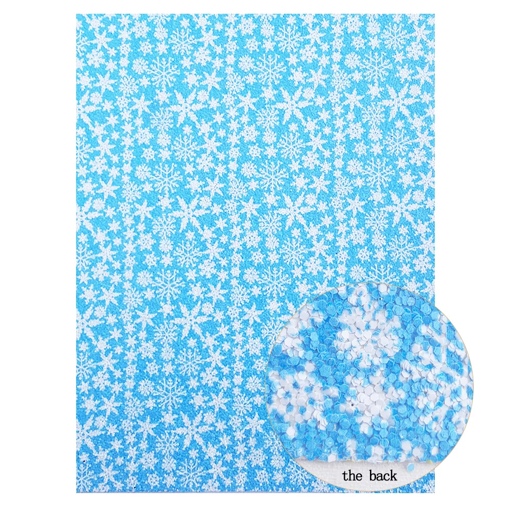 QIBU 22*30cm 크리스마스 Chunky 반짝이 패브릭 눈 인쇄 인조 가죽 시트 A4 크기 공예 재료 DIY Hairbow 액세서리