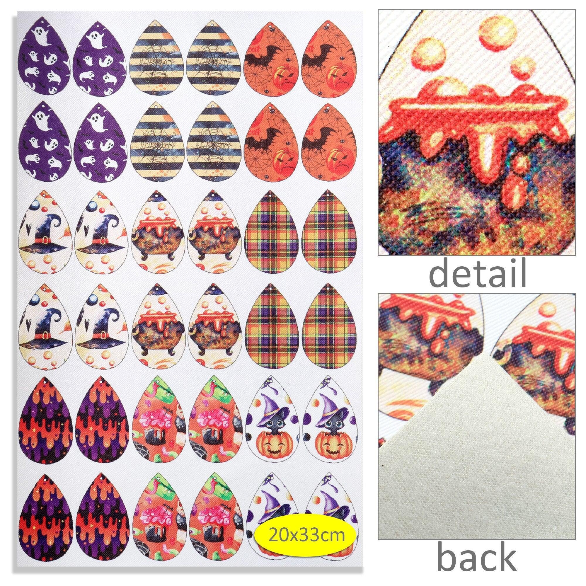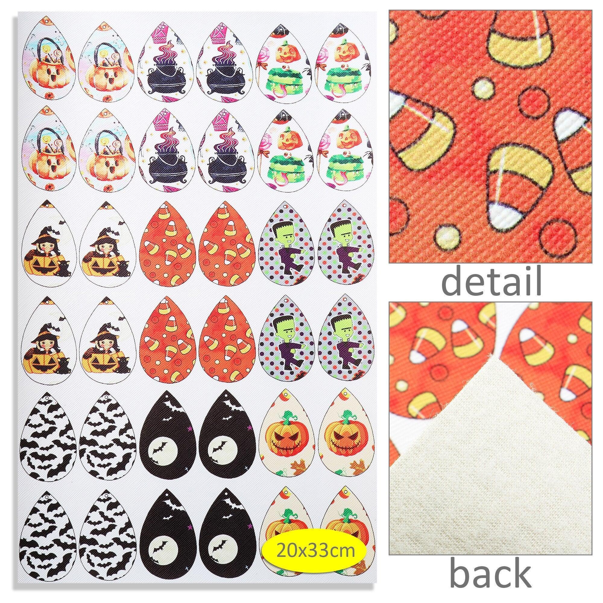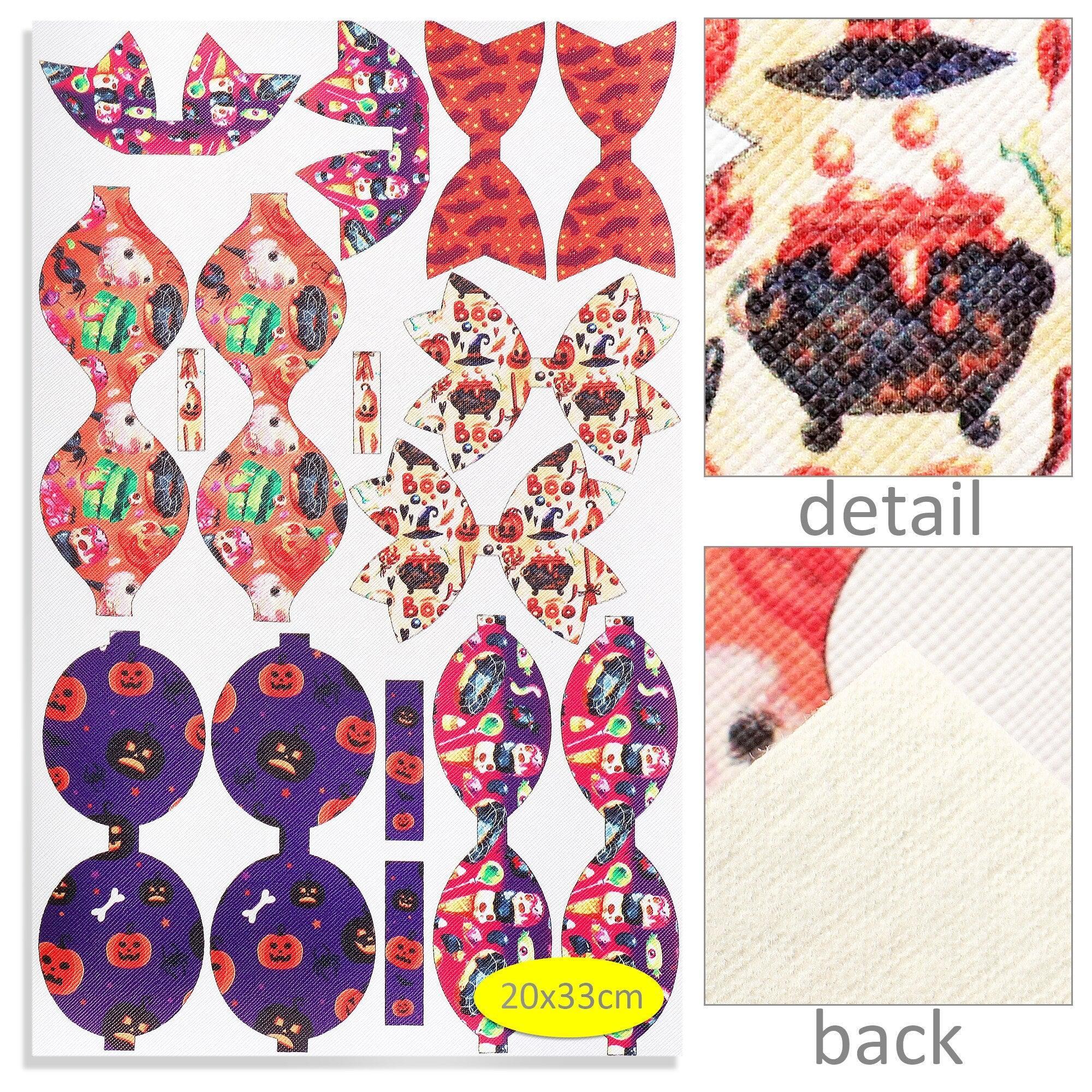 20x33cm 만화 테마 인조 가죽 시트 할로윈 인쇄 합성 가죽 패브릭 DIY Precut에 대한 위치 지정 활