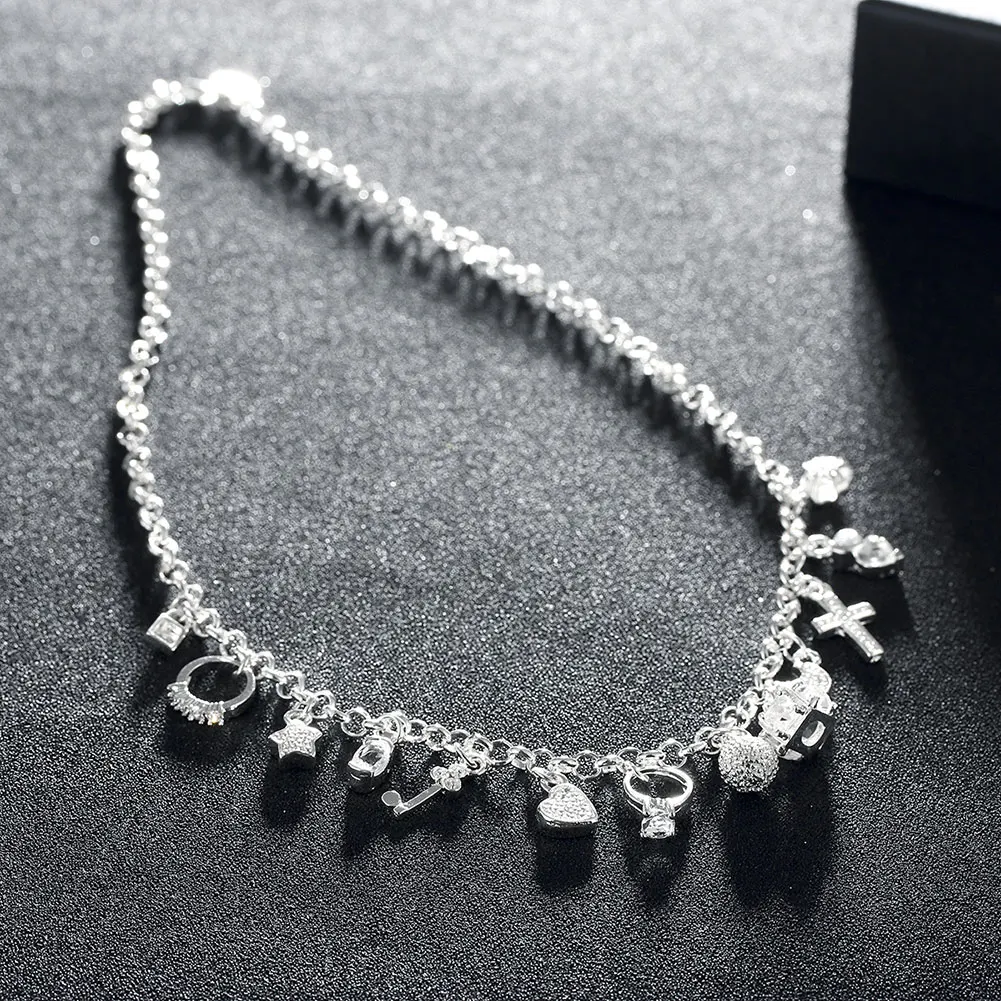 핫 패션 파티 고귀한 보석 925 스털링 실버 크리스탈 크로스 하트 문 별 팔찌 목걸이 여성을위한 좋은 선물 세트